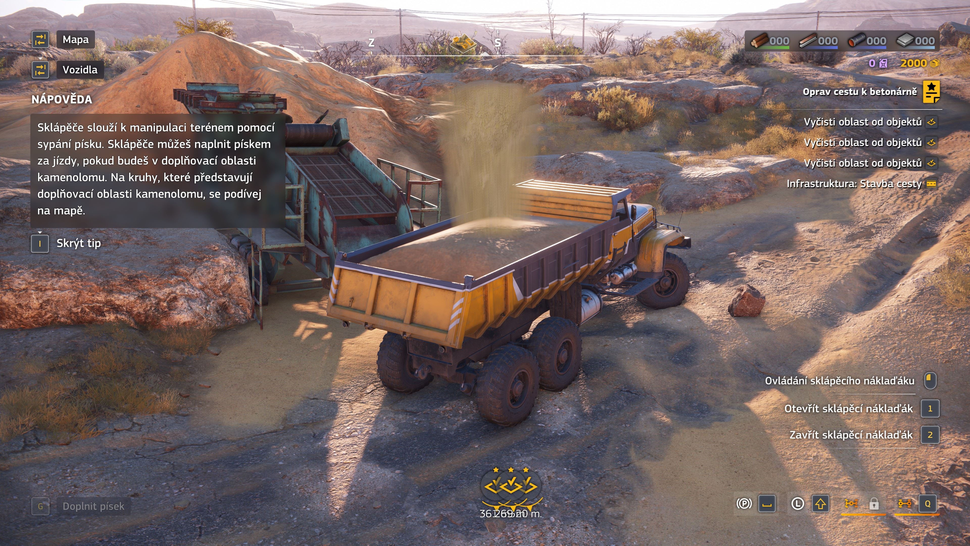 Jediné, čo nie je pekne fyzikálne dotiahnuté, je piesok (skôr by to mal byť asi štrk) a je to až ako päsť na oko. Ten nie je fyzikálne zapracovaný, ale len scriptovo a navyše zle. Vidíte, ako nákladné auto vysýpa piesok pár metrov za seba alebo buldozér rozhŕňa piesok. Rovnako aj napĺňanie piesku do auta je také, že stačí byť v okolí zariadenia a piesok sa nasype do auta z neba. Pritom veľké veci si musíte naberať žeriavmi úplne presne. Ovládanie žeriavov niekedy dosť na nervy.