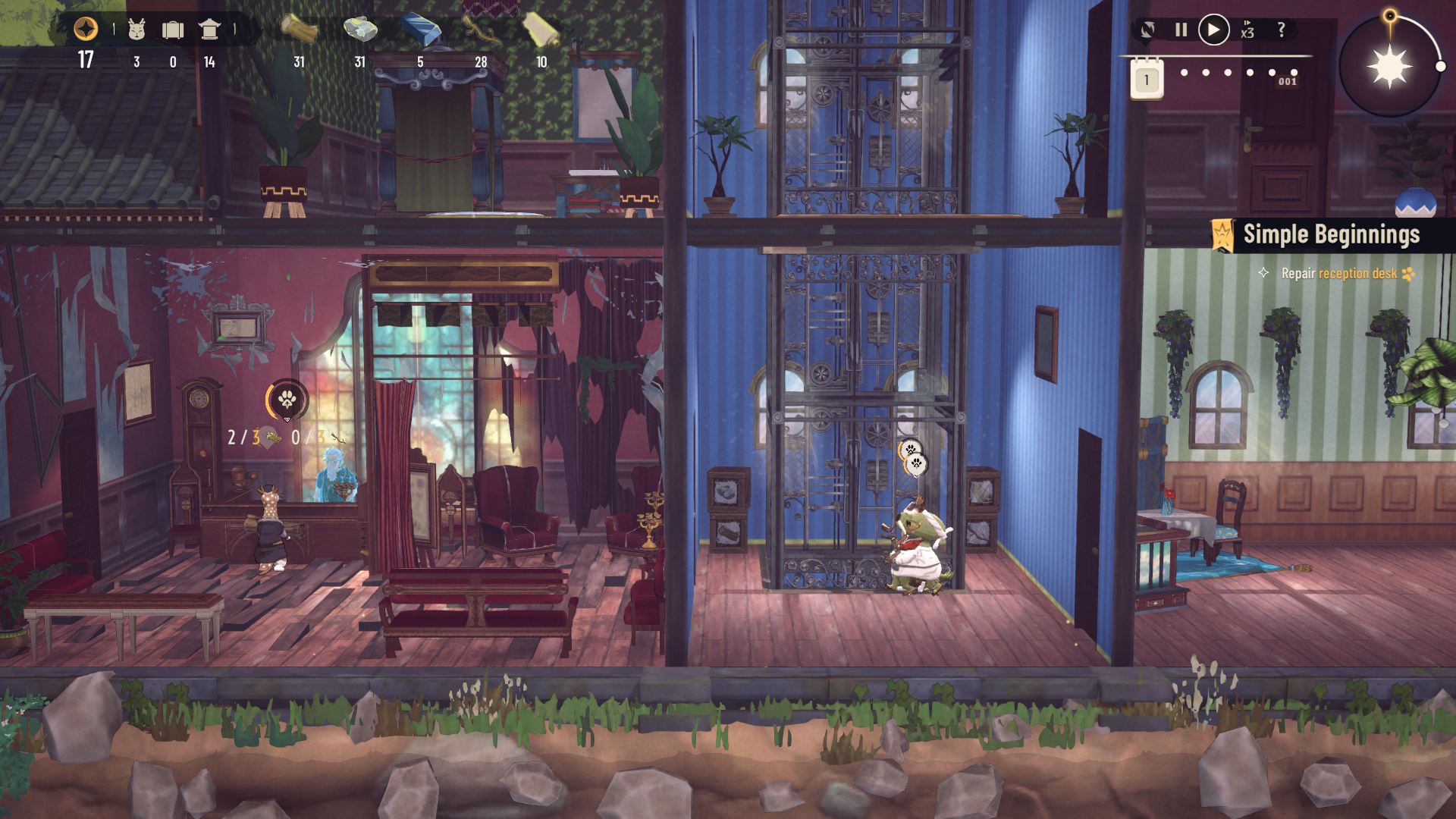 Hra sa ovláda pomerne dobre až na kameru, ktorá po chvíľke hýbania s ňou preletí celú obrazovku ako keby som konštantne hral s konzolovým ovládačom. UI je tiež všeobecne prehľadné. Občas sa akurát stane, že predmety sú naskladané v rade za sebou a je ťažké na ne namieriť kurzorom, kým hráč nezoomuje. Ďalej mi prekážalo umiestňovanie nábytku, kedy má hráč k dispozícii len priblížený pohľad na hotel, nemôže si ho oddialiť aby si vedel rýchlejšie vybrať miestnosť.