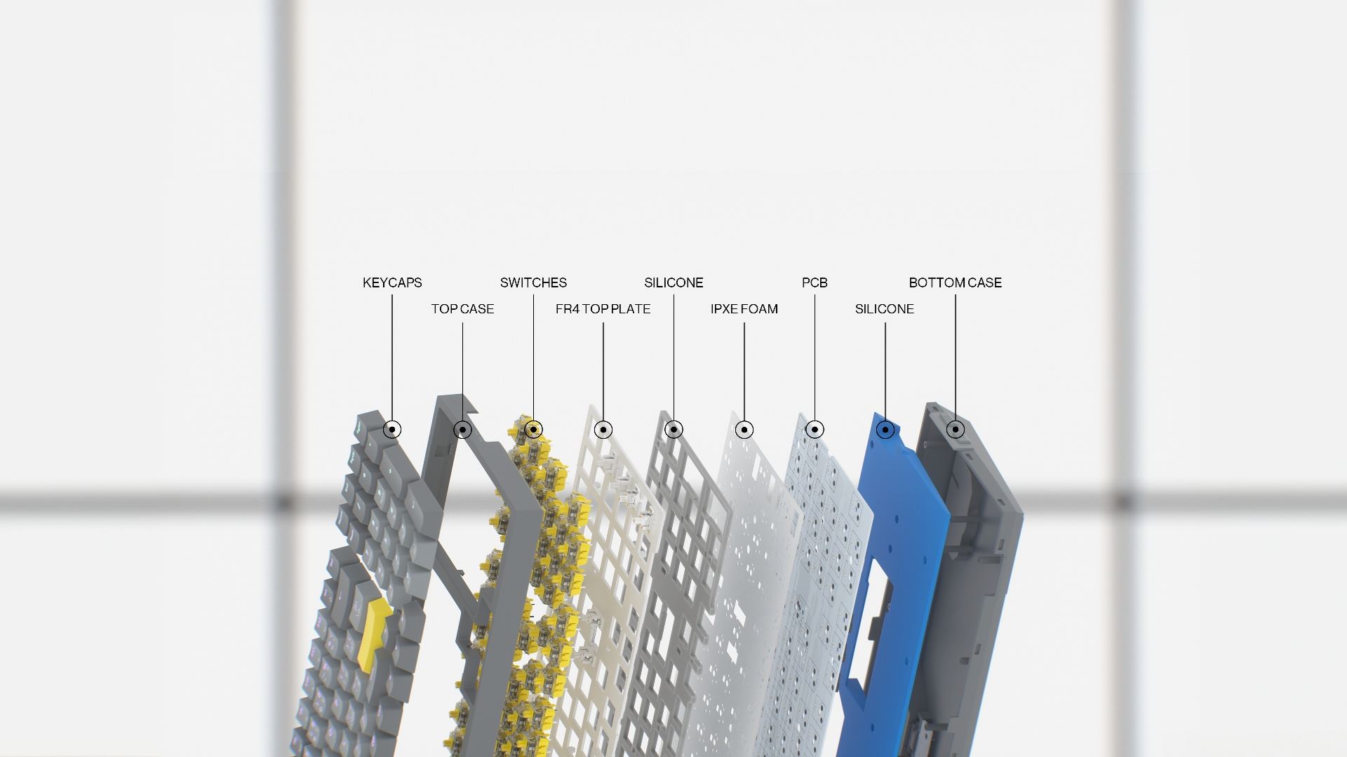 Na pohodlie pri písaní má vplyv aj viacvrstvová konštrukcia - vrátane dvojitej silikónovej výplne na tlmenie vibrácií a pevnej hornej dosky z FR4 laminátu, ktorá zabraňuje prehýbaniu. Klávesnica má zacvakávaciu konštrukciu bez skrutiek.