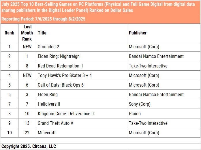 Tu vidieť, že Monster Hunter: Wilds a Oblivion Remastered naďalej dominujú od začiatku roka. Ale pekne vyskočil nový College Football 26 sa hneď po vydaní dostal na 3. miesto v celoročnom rebríčku a odsunul Assassins Creed Shadows na štvrté.