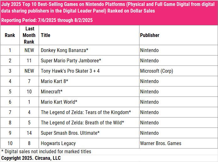 Samotný Switch 2 bol najpredávanejšou konzolou druhý mesiac po sebe a prekonal 2 milióny predajov v U.S. Má teraz o 75% vyšší predaj ako Switch 1 pri svojom vydaní. Oproti nemu PS5 aj Xbox Series zaznamenali medziročný pokles (-47 % a -69 %). Nintendo Switch 2 Pro Controller je mediztým najpredávanejším príslušenstvom roka.