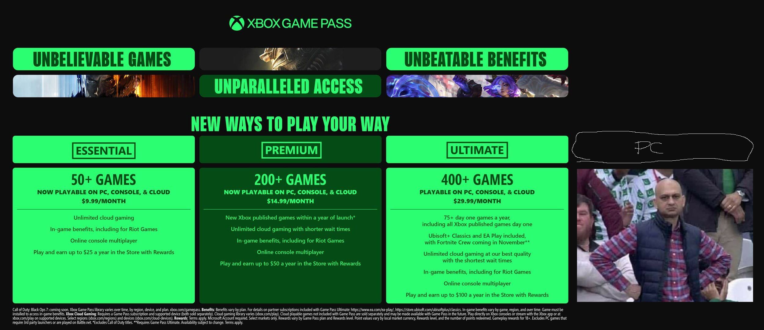 Totiž, ohlásil tri predplatné, z ktorých sa dve premenovali - Core na Essential a základný na Premium, teda rovnako ako to má PS Plus. A aj keď sa zdalo, že PC Game Pass zrušil a spojil ho so stredným Premium predplatným, ten nakoniec zostal. Nespomína ho, nepriznáva sa k nemu, ale stále je v ponuke. Možno si ho necháva aj ako zálohu, aby mohol začať tlačiť, ak sa mu cenová stratégia nepodarí. Ak však áno, môže ho zrušiť.