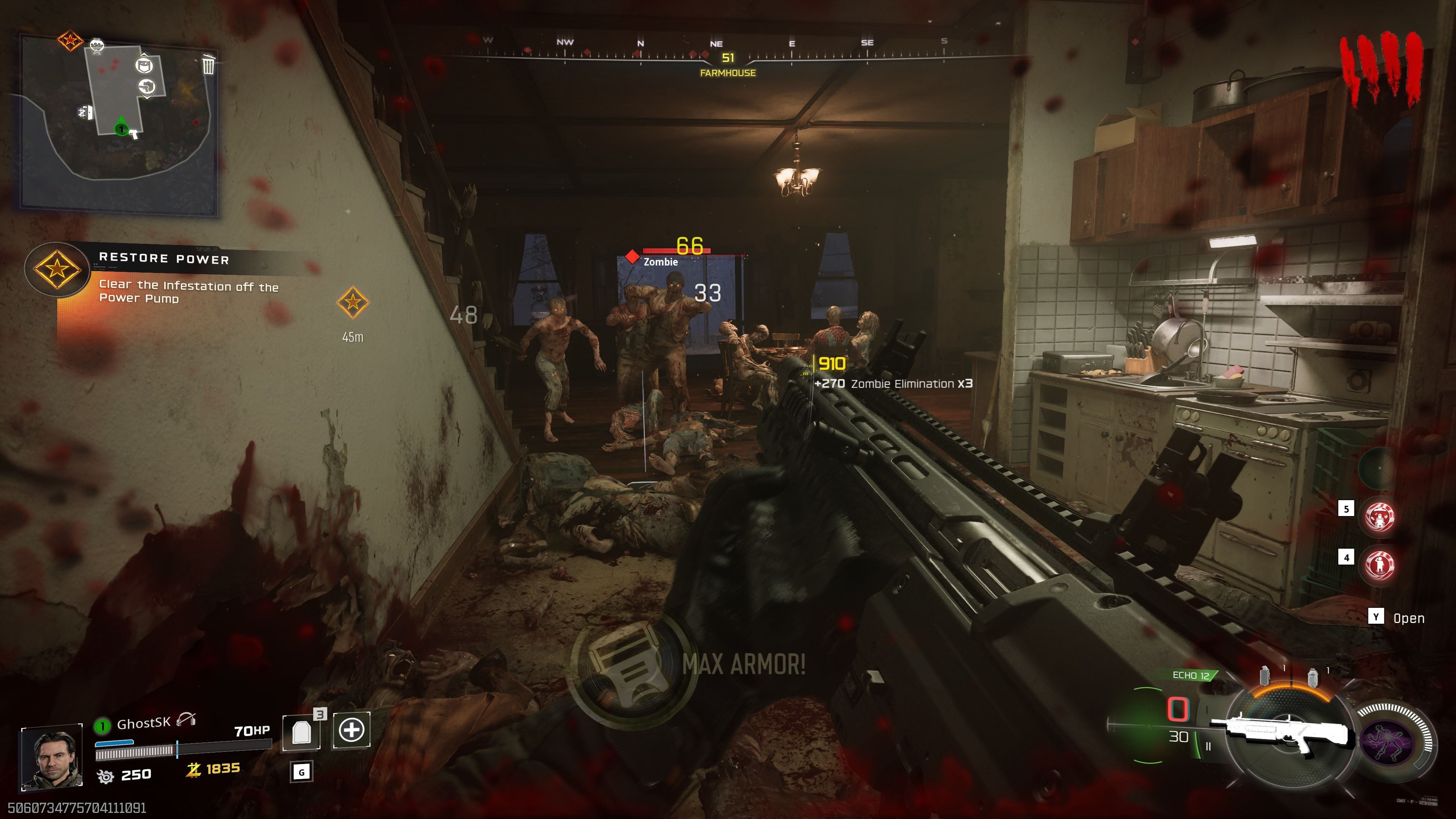 Viac-menej je to štandardný zombie režim, dobre hrateľný a tentoraz aj pri single hre. Mimochodom, mapa je veľmi dobre dizajnovaná, spája zombie horor s klasickým hororom a je priam halloweenska, kde dom má mŕtve telá za stolom, stodola zase obesených zombíkov. Dotvárajú tak atmosféru strachu.
