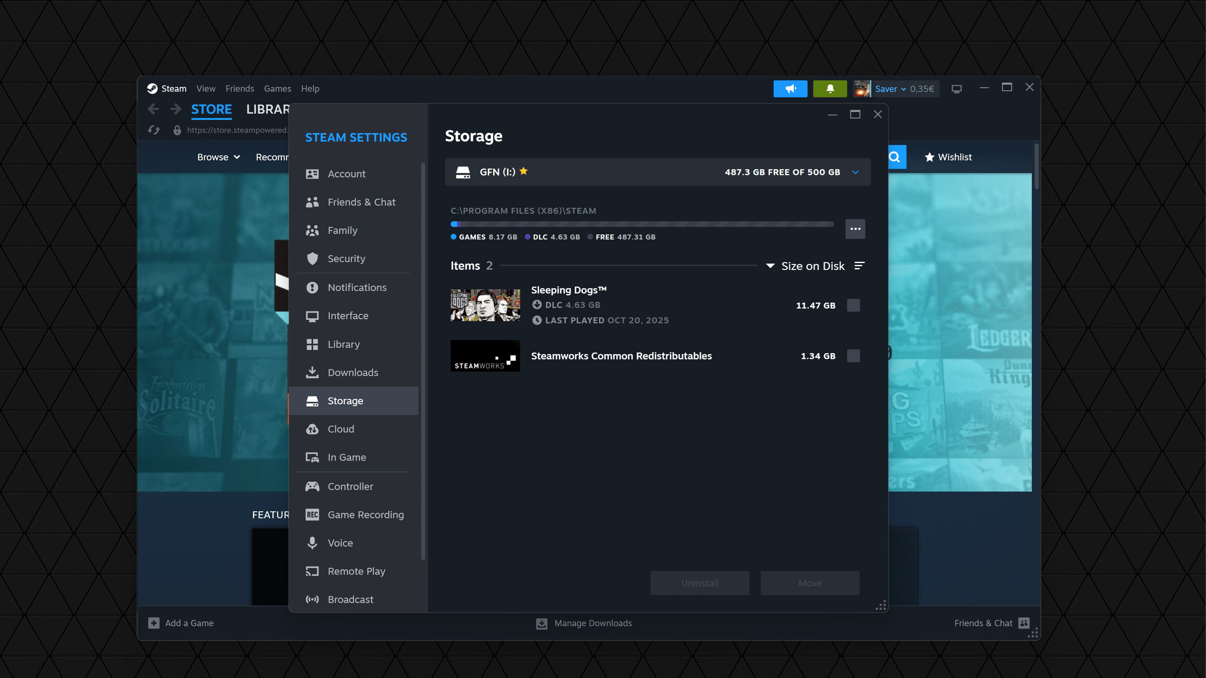 Steam má v aplikácii aj odklik na manažment miesta, kde môžete hry odinštalovávať alebo aj ďalšie nainštalovať bez nutnosti ich hľadania v aplikácii. Rovno vám totiž Steam ukáže všetky podporované hry. U mňa to boli nasledovné: