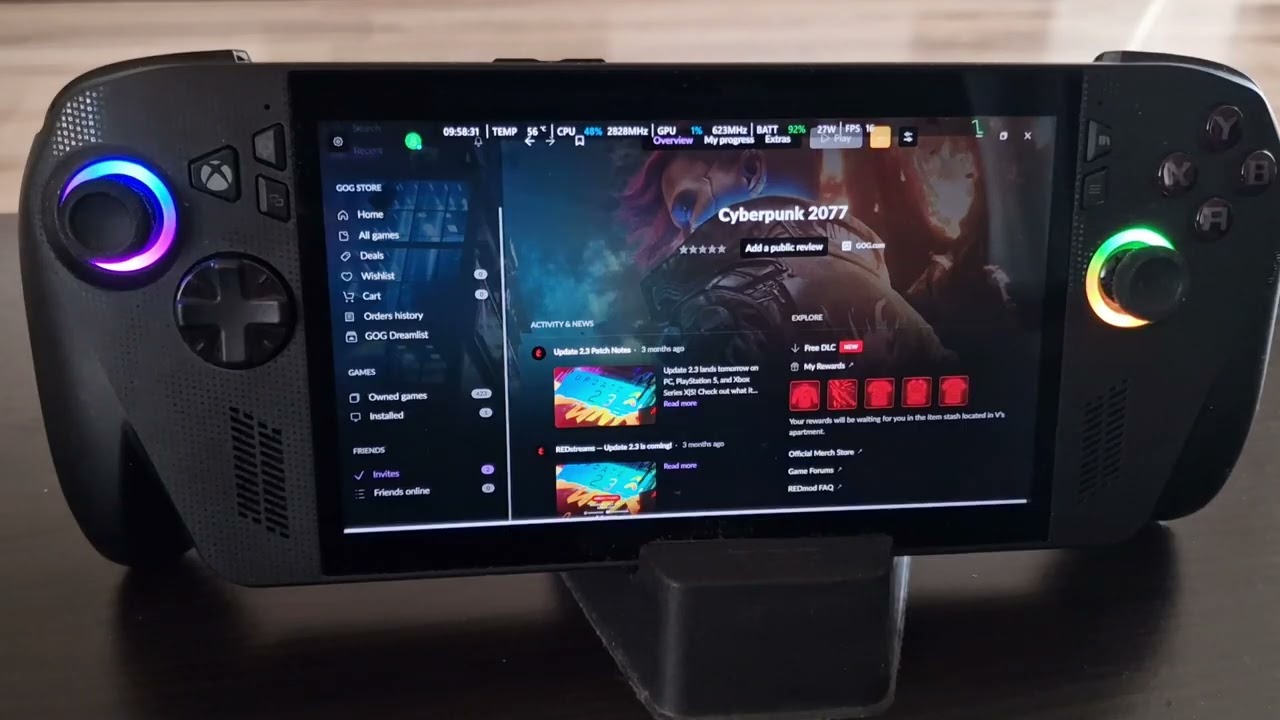 Zároveň handheld prináša evolúciu Windowsu na handheldoch, kam Microsoft pridal úvodné Xbox menu ešte pred nabootovaním Windowsu, čo zaistilo viac pamäte a aj výkonu a aj jednoduché ovládanie. Nie je to ešte dokonalé, ale prekvapivo dobre funkčné a zároveň sú zapracované všetky ostatné Stores, a teda môžete hrať všetko bez obmedzení.