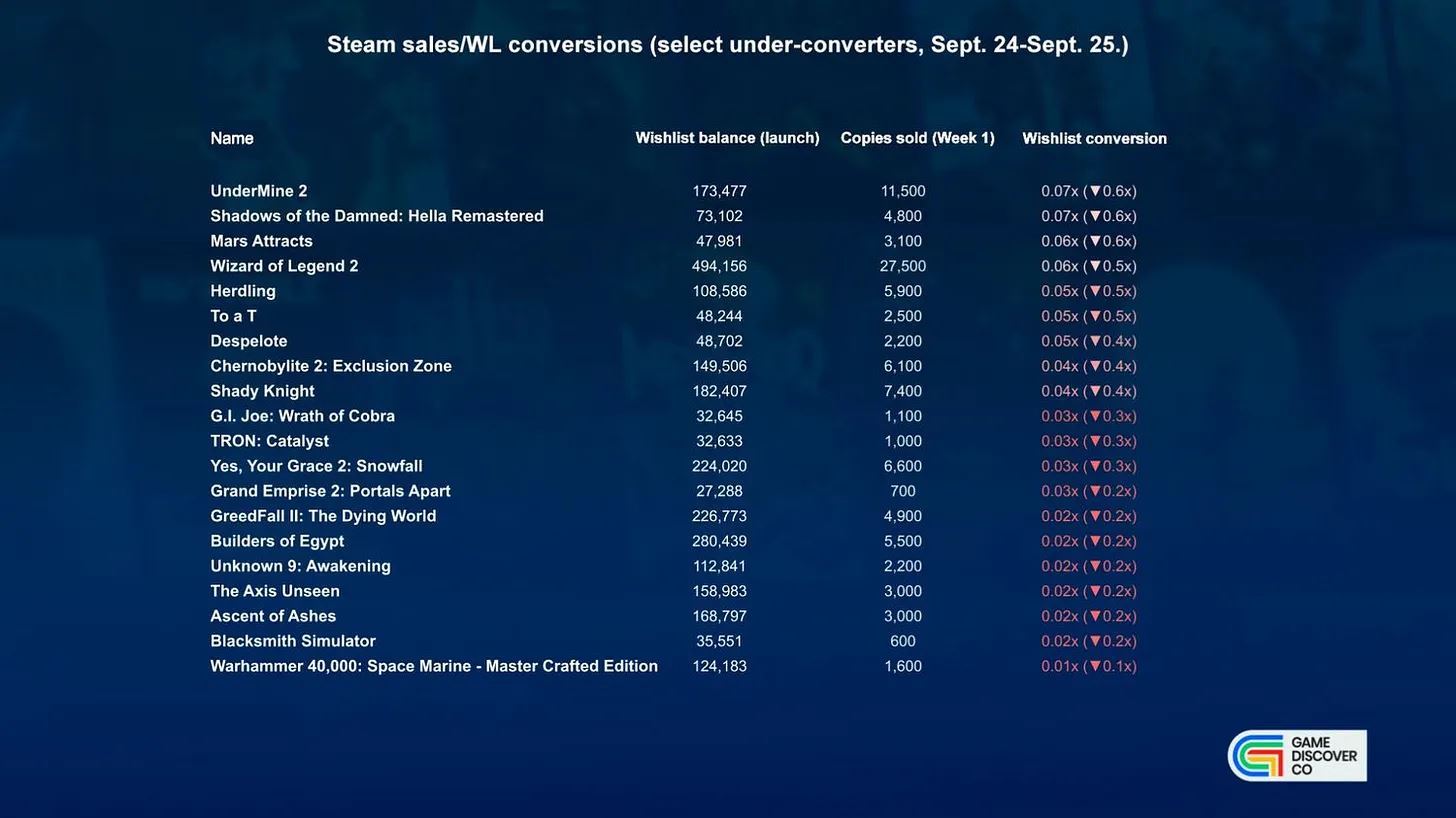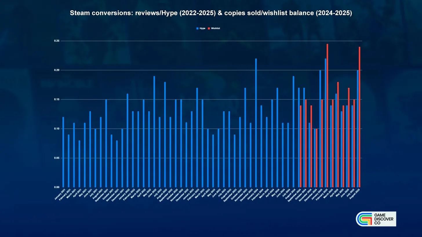 Podľa GameDiscoverCo sa konverzné pomery na Steame v posledných rokoch zásadne nezhoršili, ale trh je presýtenejší. Získať dostatok wishlistov je čoraz ťažšie a ich počet nemusí presne odrážať reálny dopyt.