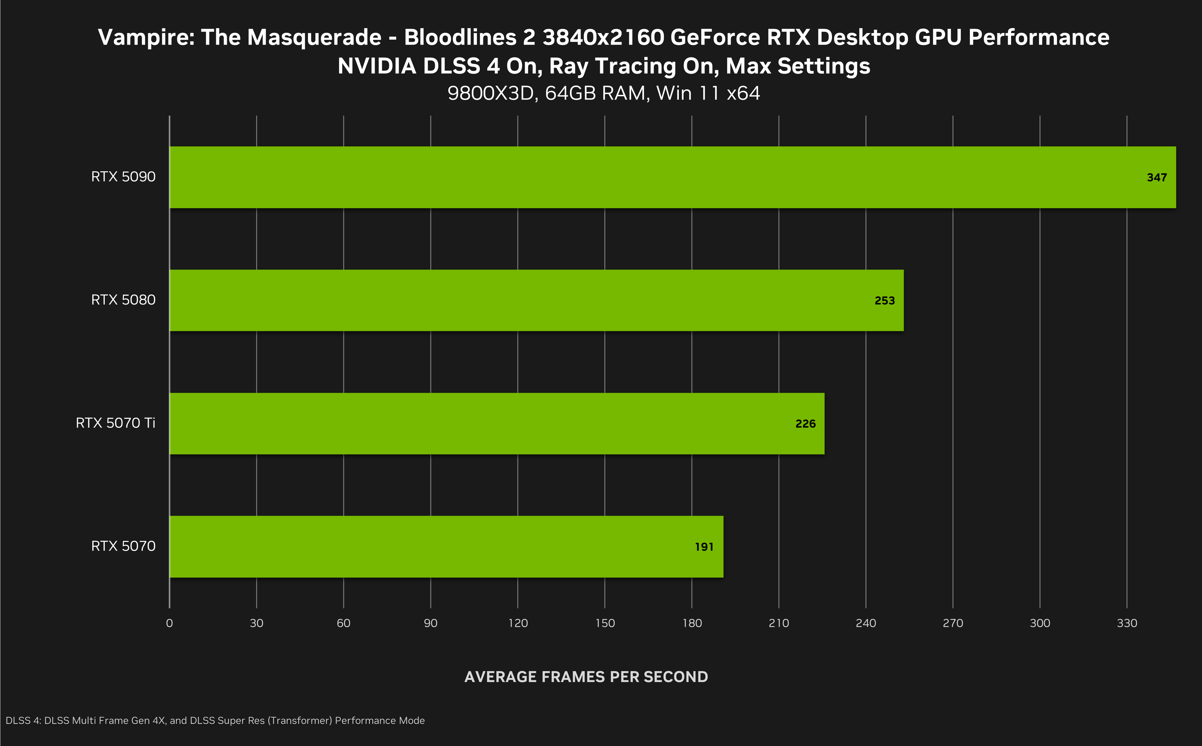 Temné akčné RPG od štúdia The Chinese Room a Paradox Interactive využíva DLSS 4, ktoré zvyšuje fps až 6,1-násobne - napríklad RTX 5090 dosahuje 340 FPS, RTX 5080 250 FPS. Hru bude možné hrať v 4K s maximálnymi detailmi aj cez GeForce NOW.