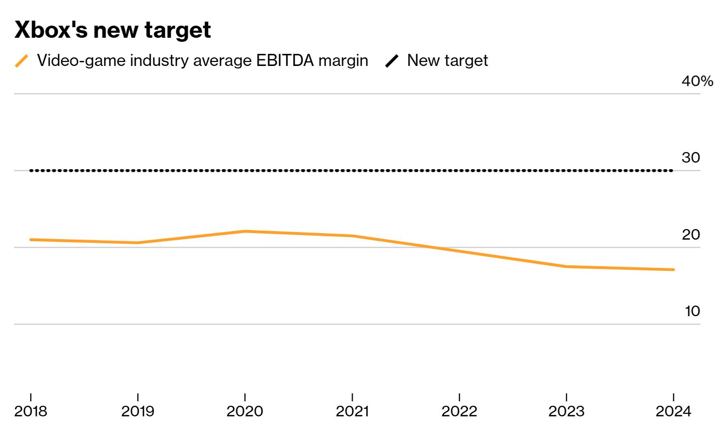 Cieľ zaviedla finančná riaditeľka v roku 2023 a zásadne ovplyvnil stratégiu vedenia pod Philom Spencerom. Xbox v reakcii zrušil viaceré dlhoročné projekty ako Everwild, Perfect Dark či Project Blackbird a prepustil tisíce zamestnancov, aby splnil nové finančné očakávania. Nakoniec aj zvýšili cenu konzol a Game Pass predplatného, aby vyvážili zisky.
