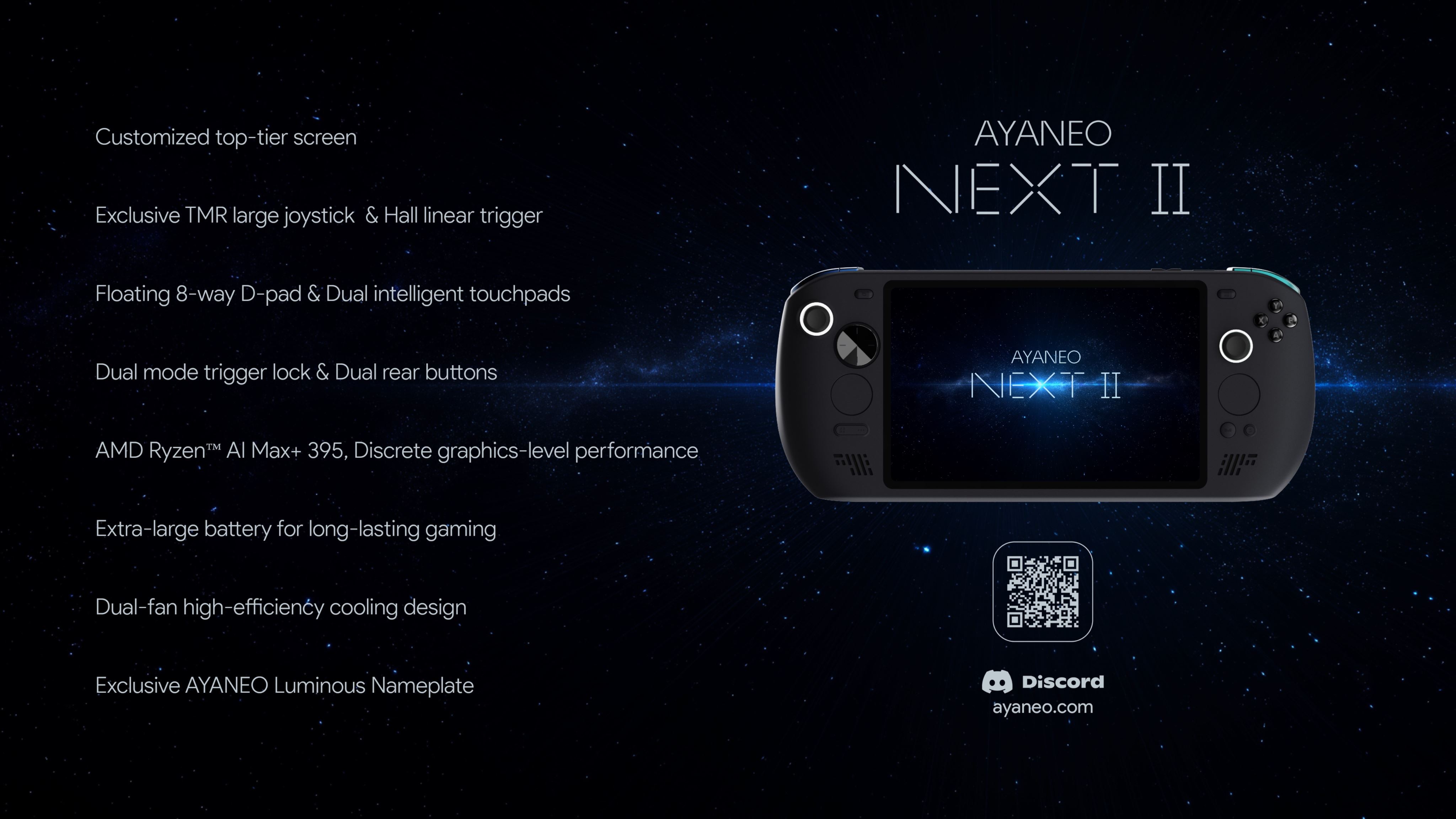 Firma AYANEO predstavila svoj nový herný handheld NEXT 2, ktorý beží na Windowse a využíva najvýkonnejší modilný procesor - AMD Ryzen AI Max+ 395. Ide o rovnaký čip, aký používajú aj konkurenčné zariadenia GPD Win 5 a OneXPlayer X1, takže výkonovo bude patriť medzi najvyššiu triedu prenosných konzol. Samozrejme bude mať aj vysokú spotrebu a masívne chladenie. Maximálny grafický výkon môžeme čakať okolo RTX 4060.