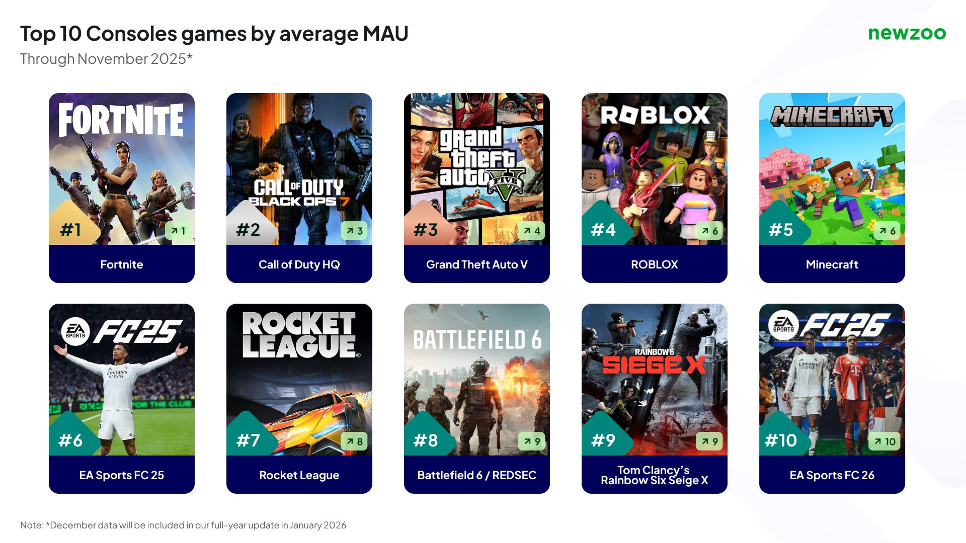 Rok 2025 ovplyvnili aj veľké udalosti. Odklad Grand Theft Auto VI na rok 2026 síce dominoval titulkom, no Newzoo ho vníma skôr ako presun výdavkov v čase než pokles dopytu. Grand Theft Auto V pritom zostalo jednou z najhranejších hier na PC aj konzolách aj po viac než desiatich rokoch od vydania.