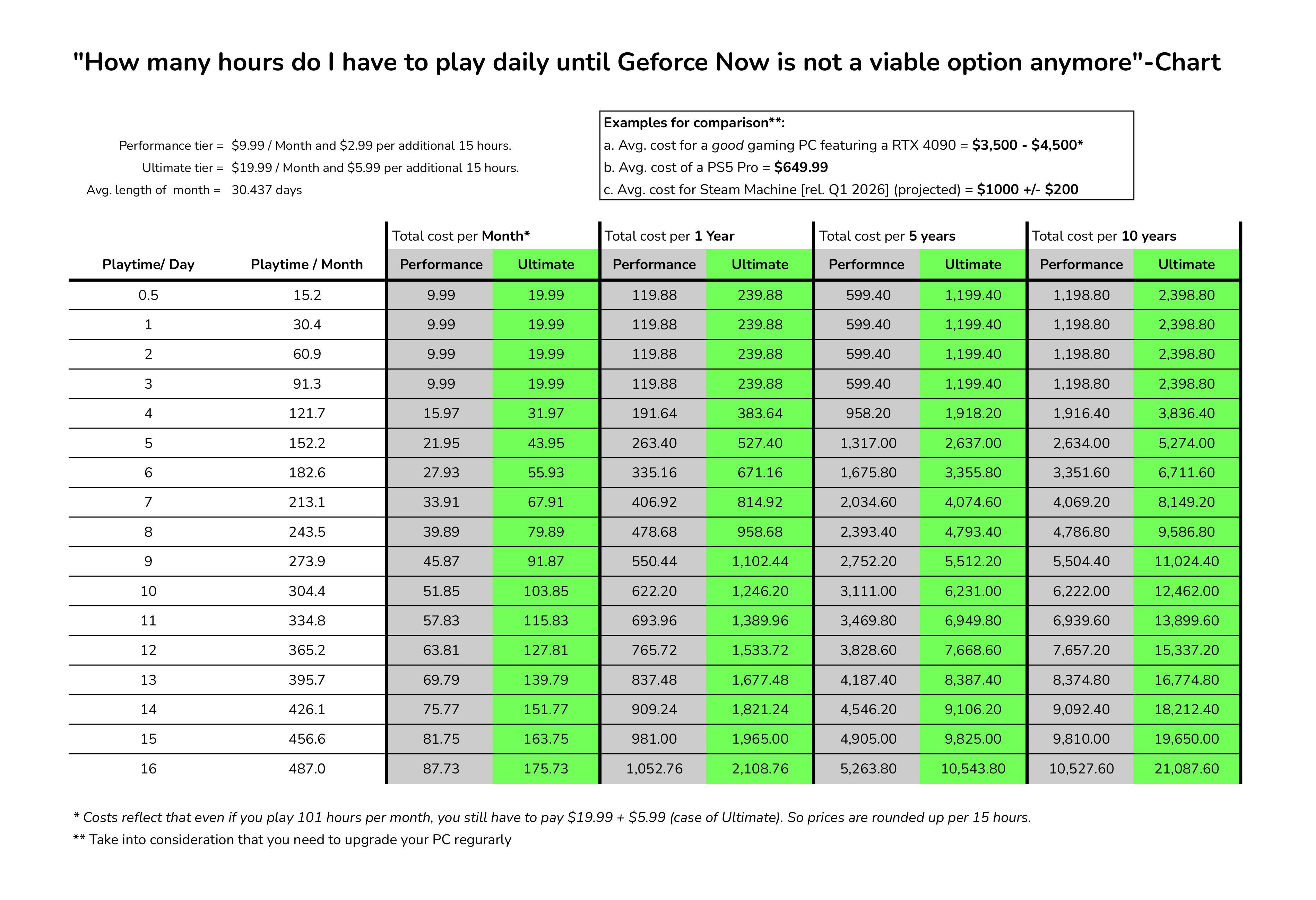 GeForce Now pôvodne fungovalo ako jednoduché predplatné s prakticky neobmedzeným herným časom. Používatelia si platili mesačný poplatok a mohli hrať bez sledovania odohraných hodín, čo bolo jedným z hlavných argumentov v prospech cloudu oproti vlastnému hardvéru. Minulý rok však Nvidia oznámila, že zavádza mesačný limit 100 hodín. Dlhoroční predplatitelia a tzv. founder používatelia dostali prechodné obdobie, ktoré však skončí 1. januára 2026.