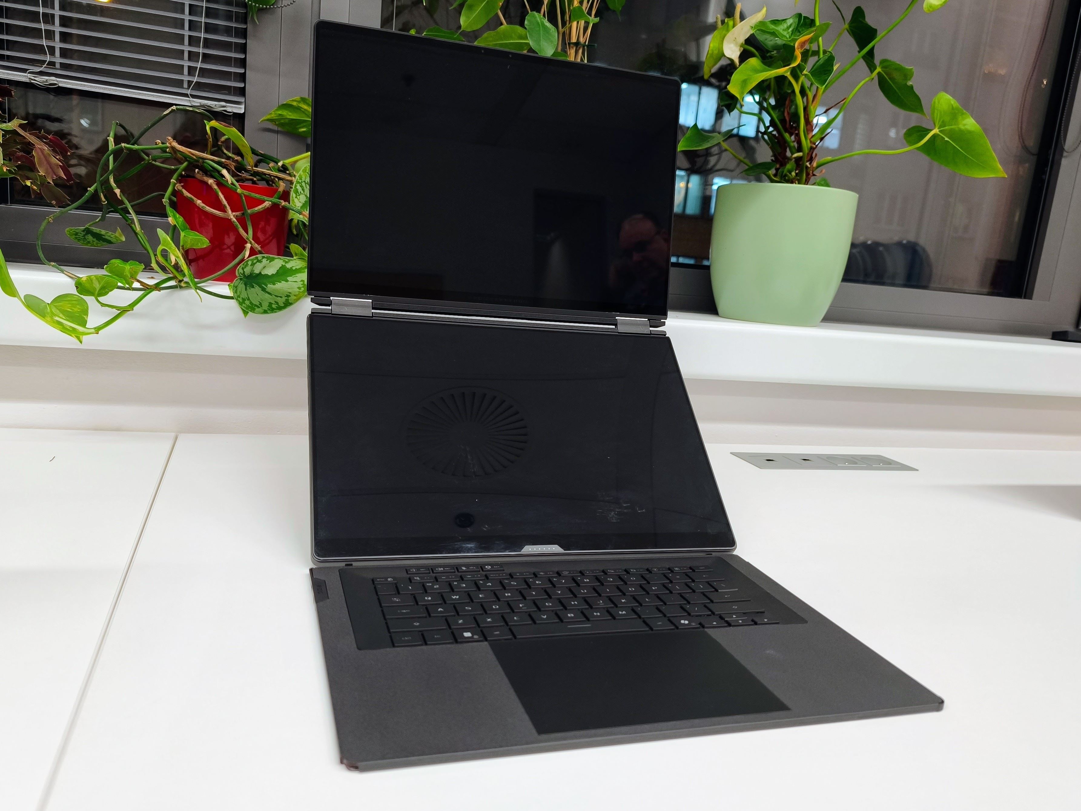 Zaujímavosťou je aj nový TFNT mód, vďaka ktorému budete vedieť využívať obe obrazovky zariadenia pre pohodlný multiplayer. Uvidíme ako bude daná funkcia aj reálne fungovať a ako ovplyvní celkový výkon, no celkovo ide o veľmi zaujímavý koncept. Čo sa týka výkonu, o ten sa opäť bude starať len Intel procesor novej generácie, pričom sekundovať mu bude výkonná grafická karta NVIDIA RTX 5090. K dispozícii dostanete 64GB rýchlej LPDDR5X RAM a 2TB PCIe Gen 5 SSD disk s Easy Swap prístupom pre jednoduchú výmenu. 6 reproduktorov, 250W nabíjanie, 90Wh batéria a Wifi 7 sú už parametre ktoré pri danom segmente jednoducho očakávate. Nechýba ani dobrá portová vybavenosť, a to Thunderbolt 4 port, čítačka SD kariet, HDMI 2.1 a klasický USB 3.2 Gen 2 port. O chladenie sa postará prepracovaný chladiaci systém pozostávajúci z tekutého kovu, parnej komory a grafitových blokov.