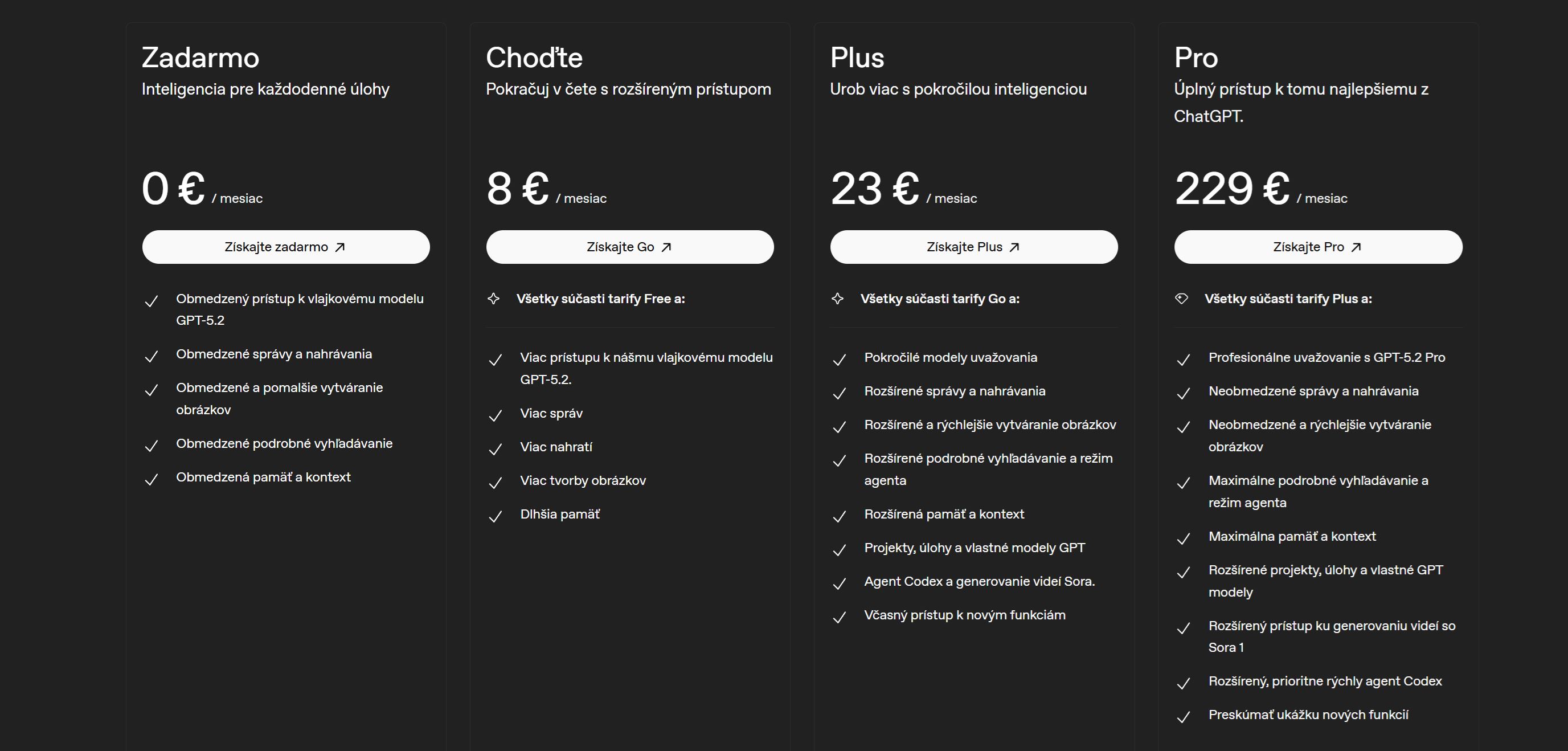 Nové predplatné cieli na používateľov, ktorí chcú ChatGPT využívať pravidelne na prácu, štúdium alebo tvorbu obsahu, no nepotrebujú pokročilé nástroje vyšších tarifov Plus alebo Pro.