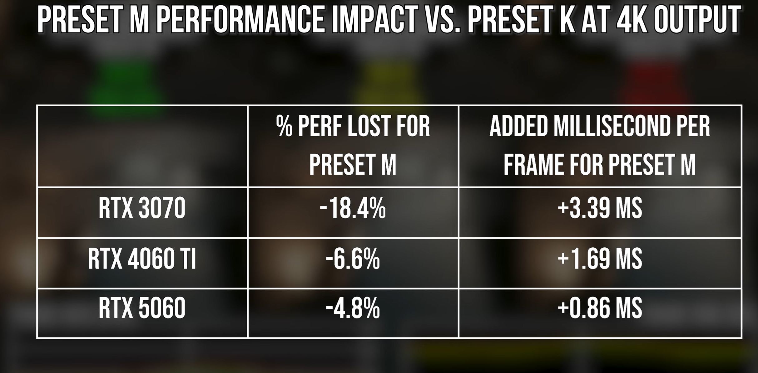 Čím novšie Tensor jadrá, tým menší dopad. Na kartách Ada a Blackwell je použitie preset M relatívne lacné, zatiaľ čo na Ampere a starších generáciách môže byť penalizácia citeľná.