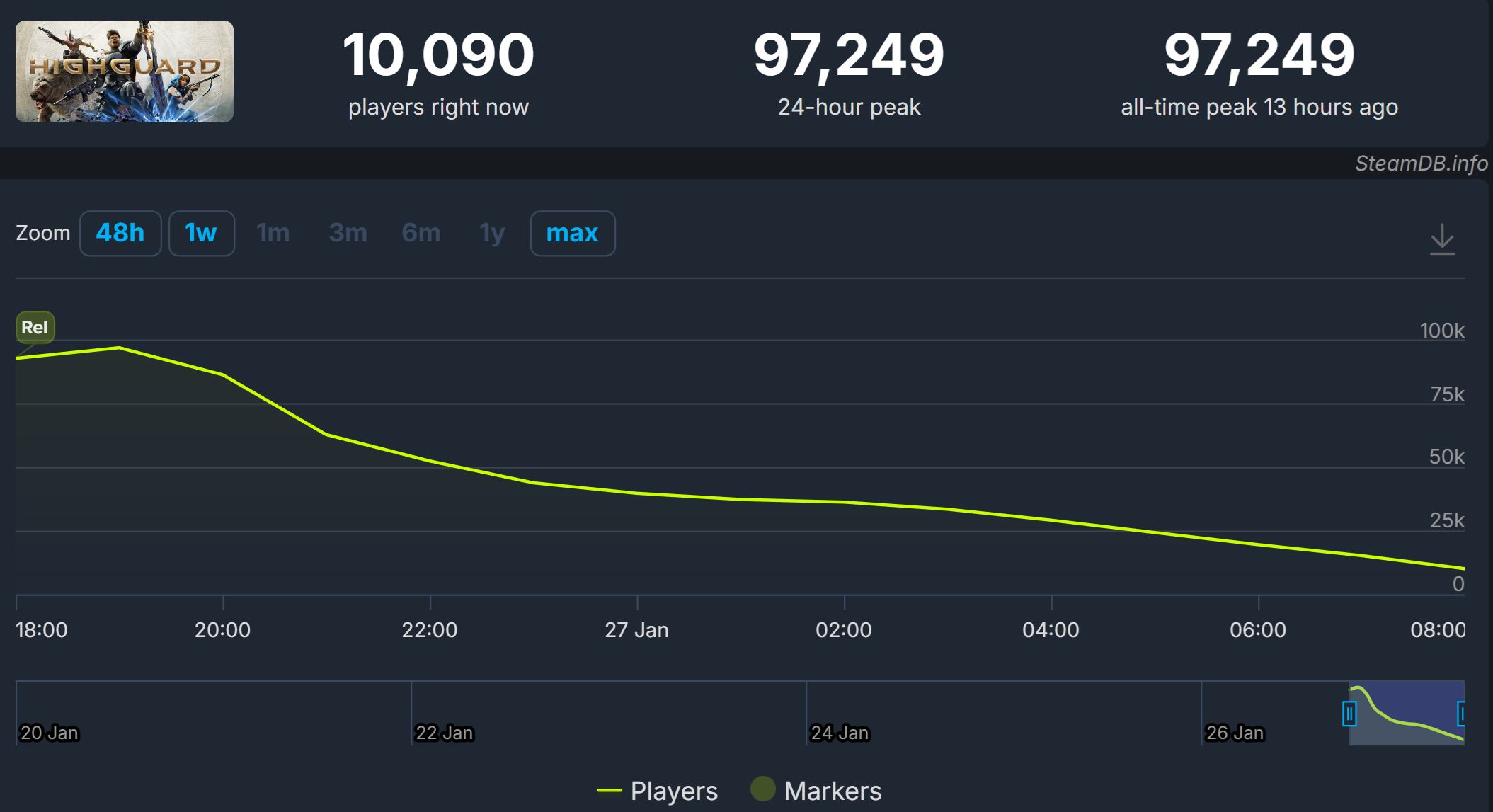 Highguard dosiahol na Steame 97 tisíc súčasných hráčov, ale rýchlo padol |