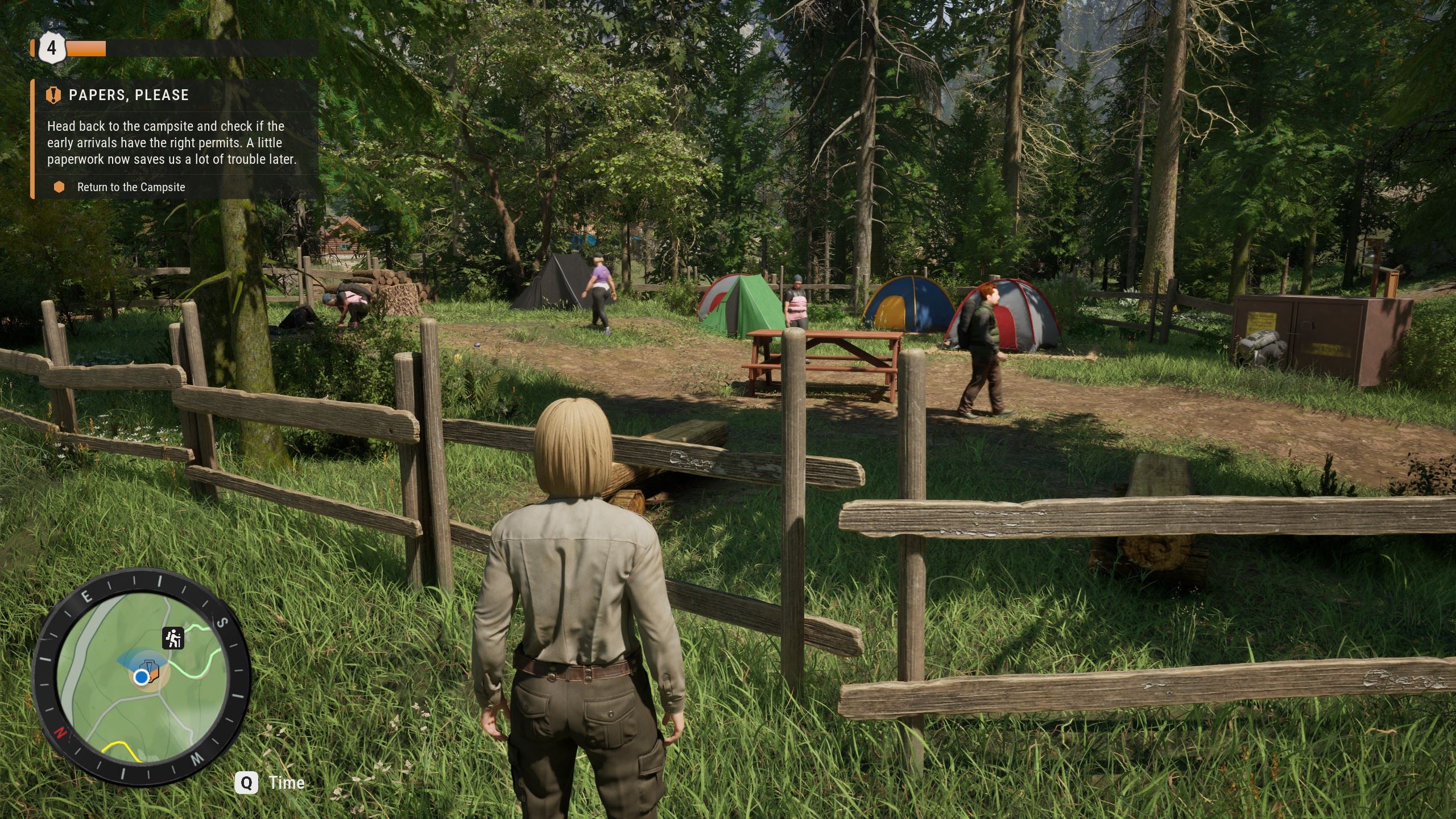 Začína sa výberom postavy. Môžete sa stotožniť s mužom alebo ženou a zmeniť si účes. Nič komplikované ani rozsiahle, ale pre potreby hry úplne dostačujúce. Prvý deň v práci začnete vyzdvihnutím vysielačky v dreveničke uprostred parku a následne prezlečením do pracovnej uniformy. Potom sa zoznámite s blízkym okolím a základnými úkonmi, ktoré sú súčasťou vašej práce. Naučíte sa opravovať poškodené značky a lavičky, budete zbierať odpadky a odnášať ich do smetných nádob, odstránite brvná, ktoré zatarasili chodníky.