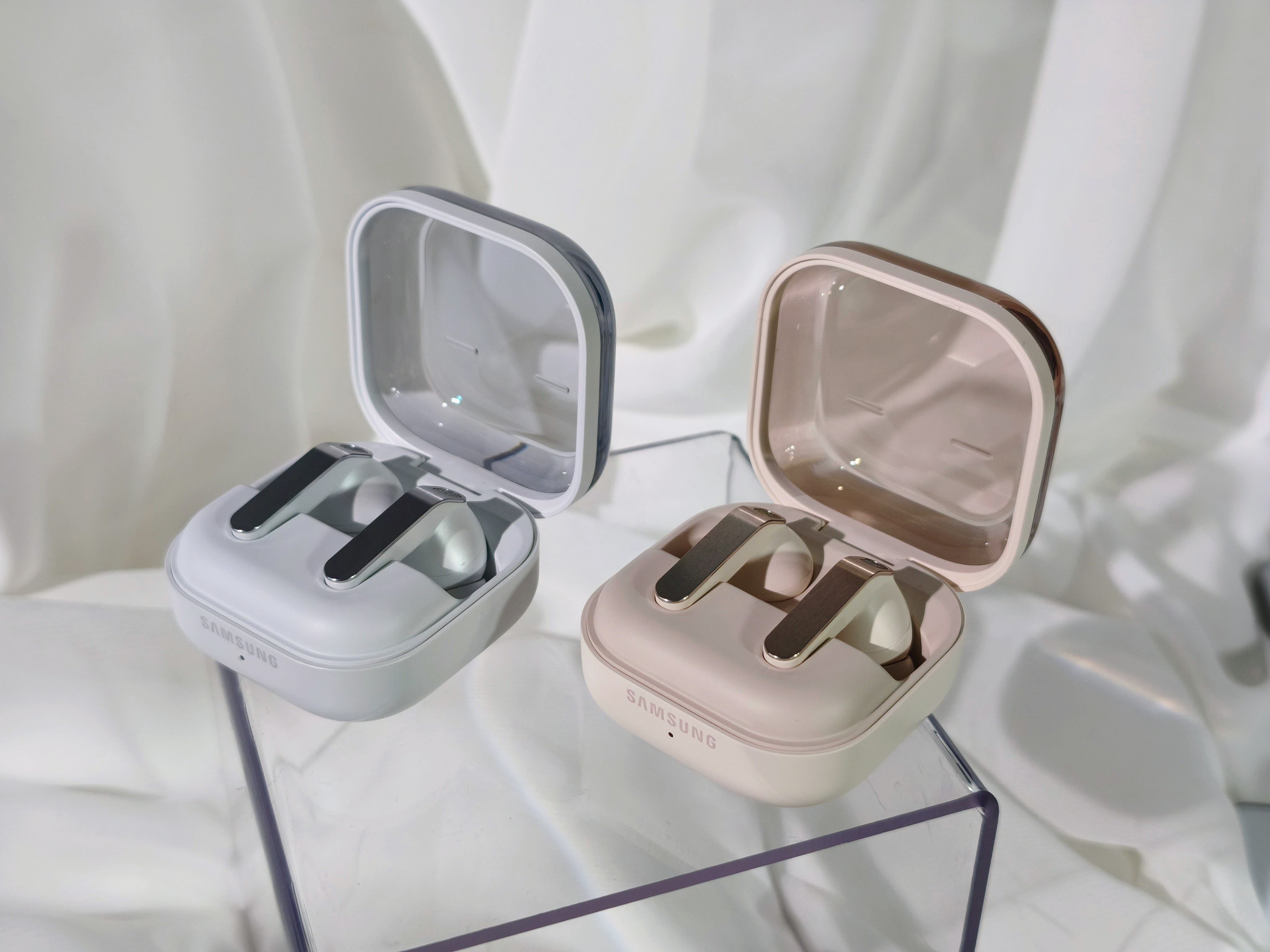 Výraznou zmenou dizajnu si prešla aj dvojica slúchadiel, ktoré po novom dostávajú ako mierne upravený tvar, tak aj zmenu dizajnu krabičky. Po novom do nej slúchadlá nebudete zasúvať, ale pokladať. Zostáva zachované rozdelenie ako pri minulých generáciách, kde základný model je s otvorenou konštrukciou bez gumených štuplov, zatiaľ čo Pro verzia disponuje uzatvorenou konštrukciou s gumenými štuplami. Zväčšili sa samotné reproduktory, ktoré medzigeneračne narástli o 20%, pričom Samsung sľubuje ako čistejší zvuk, tak aj hlbšie basy a podporu 24 bitového zvuku.