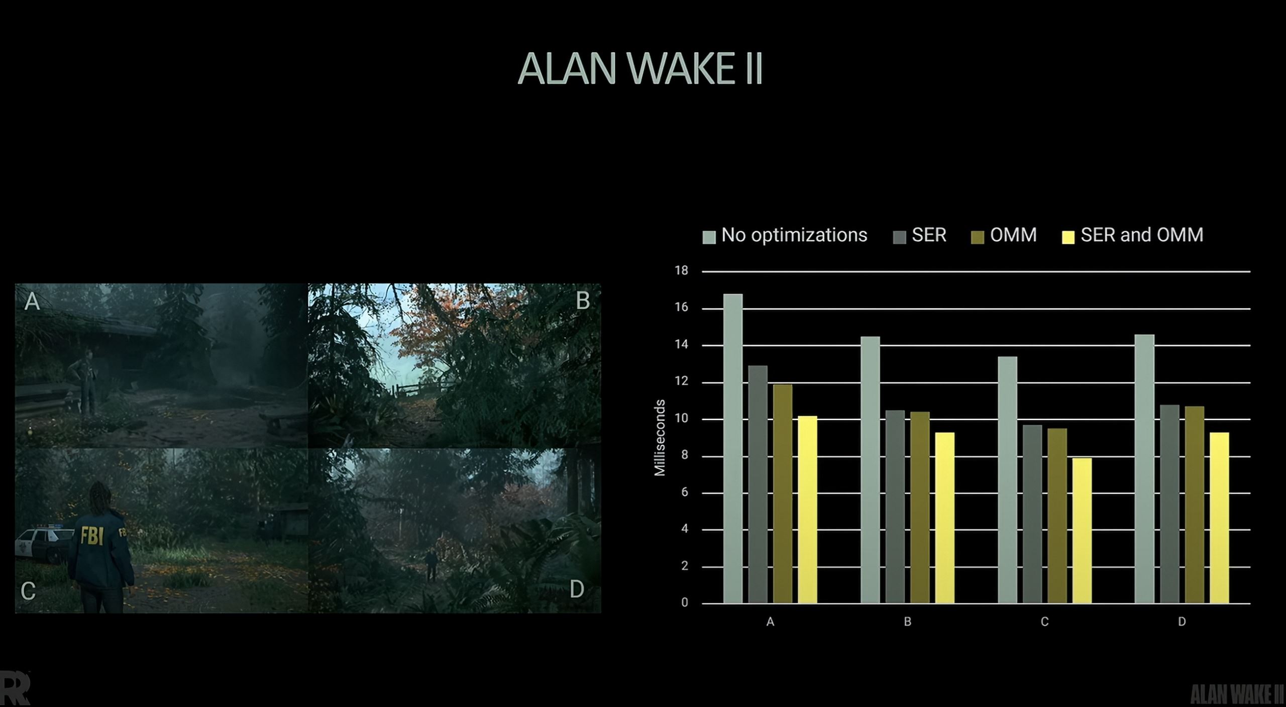 - Opacity Micromaps (OMM) - efektívnejšie spracovanie priehľadných textúr, ako sú listy stromov, tráva, ploty či vlasy