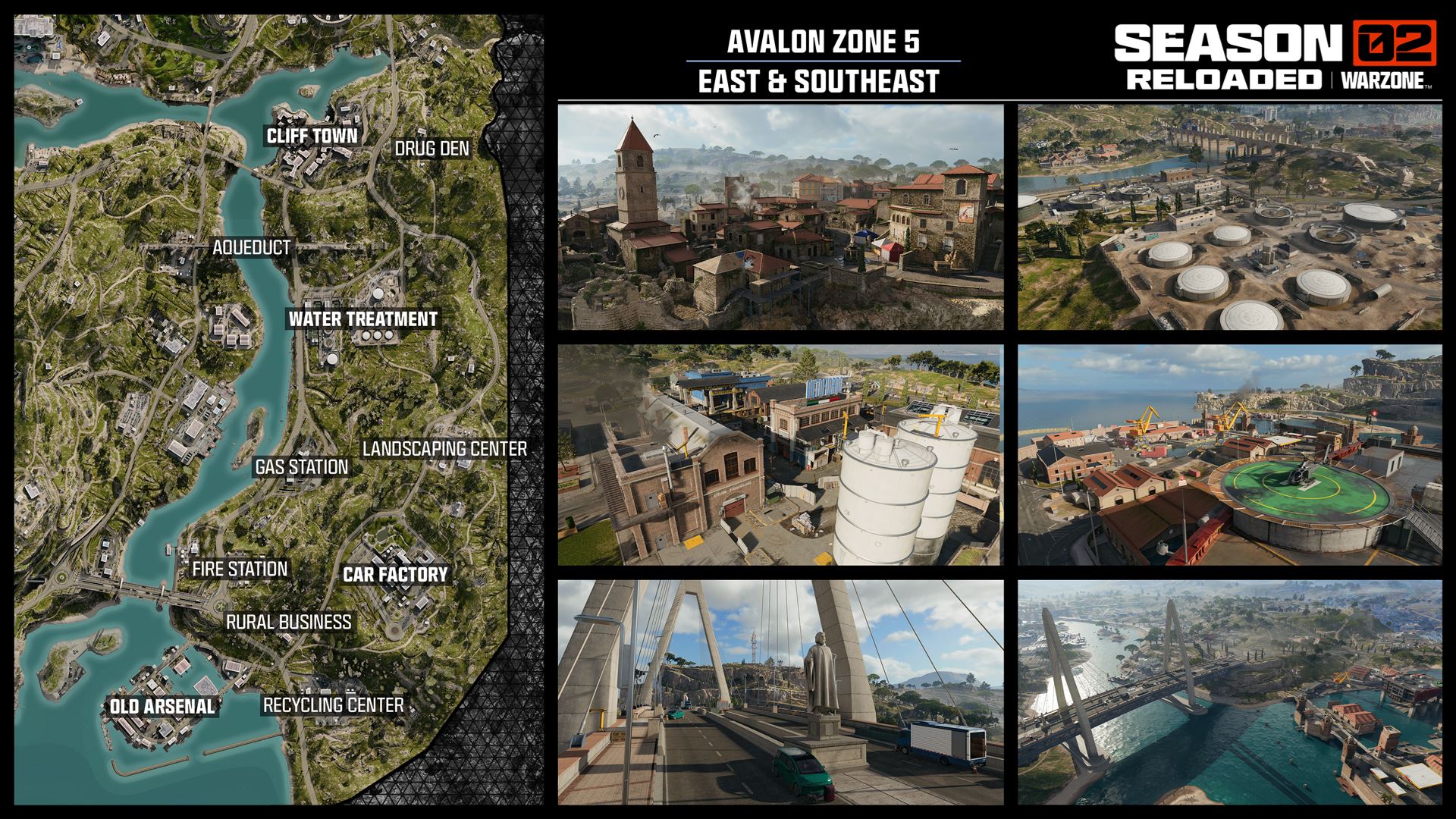 Mapa zároveň ponúka množstvo vedľajších menších POI lokalít ako Police Stations, Fire Stations, Gas Stations či menšie ruiny, ktoré slúžia ako bezpečnejšie drop zóny alebo rotačné body. Výraznú úlohu zohráva vertikalita, vodné presuny a vozidlá vrátane helikoptér, nákladných áut či taktických člnov.