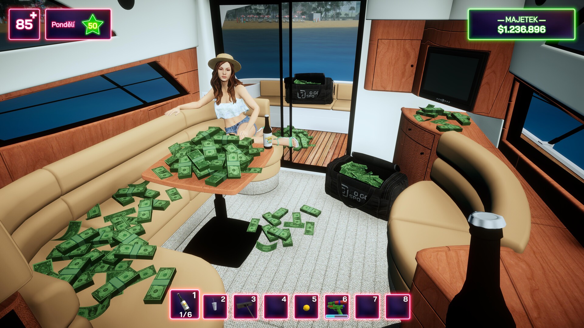 Ale čo vás v tomto slnečnom štáte skutočne čaká? Slnečná zmes príjemnej atmosféry, mini-prác, ruchu a očarujúceho chaosu! V Miami Beach by mal byť váš bankový zostatok horúci ako piesok. Začínate s prázdnymi vreckami, ale s množstvom ambícií. V uvoľnenej a humornej simulácii zbierate peniaze, zlepšujete si reputáciu a krok za krokom sa stávate miestnym mini-magnátom.