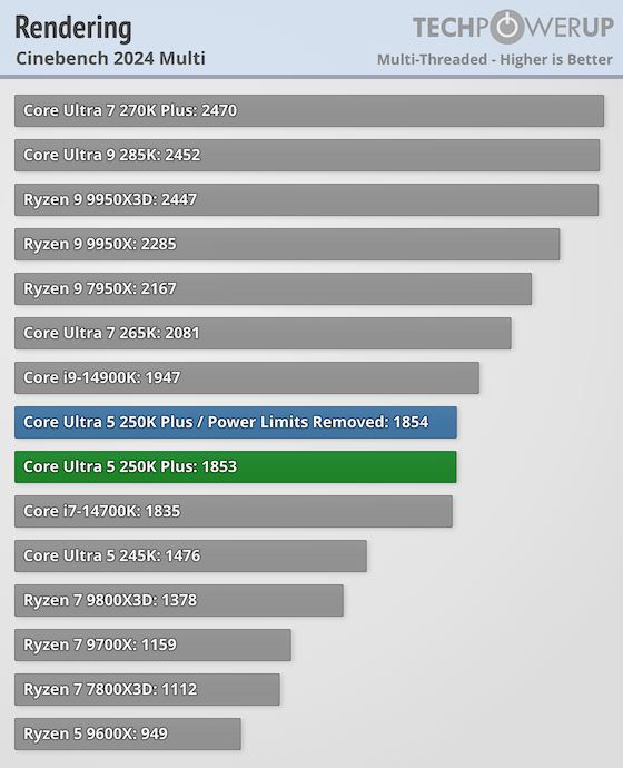 V každom prípade ak by ste prechádzali zo starých Intel čipov, alebo AMD čipov, výkon sa tentoraz pekne zvýšil. Ukazujú to testy na techpowerupe, ktorý má ako test Ultra 5 250K Plus, tak Ultra 7 270K Plus