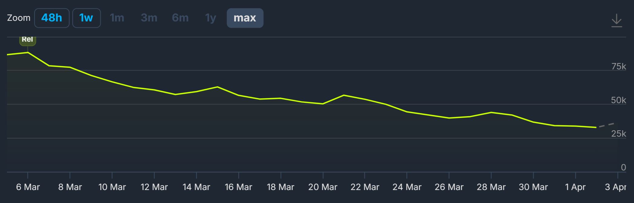 Medzitým to však s číslami nevyzerá dobre, počet súčasných hráčov klesá už k 10 tisícom a krivka klesania tam je citeľná. Uvidíme, či dokážu odliv zastaviť, respektíve na akom čísle sa to ustáli. Takéto hry vedia fungovať aj s 10 tisíc hráčmi, ale hlavne pri menších firmách a náklady musia byť zoptimalizované. Bungie určite čakalo väčšie čísla a aj predaje, ale majú toto a musia si s tým poradiť.