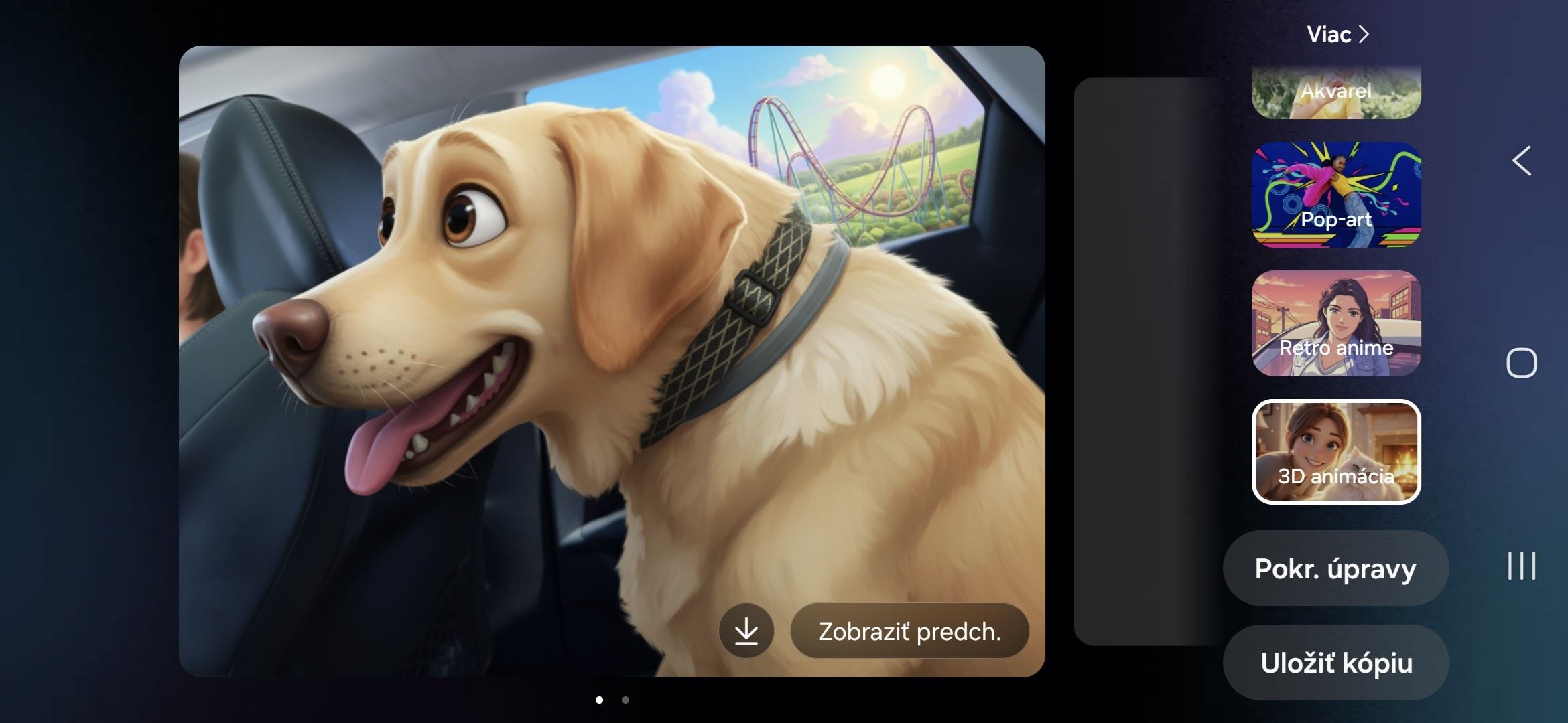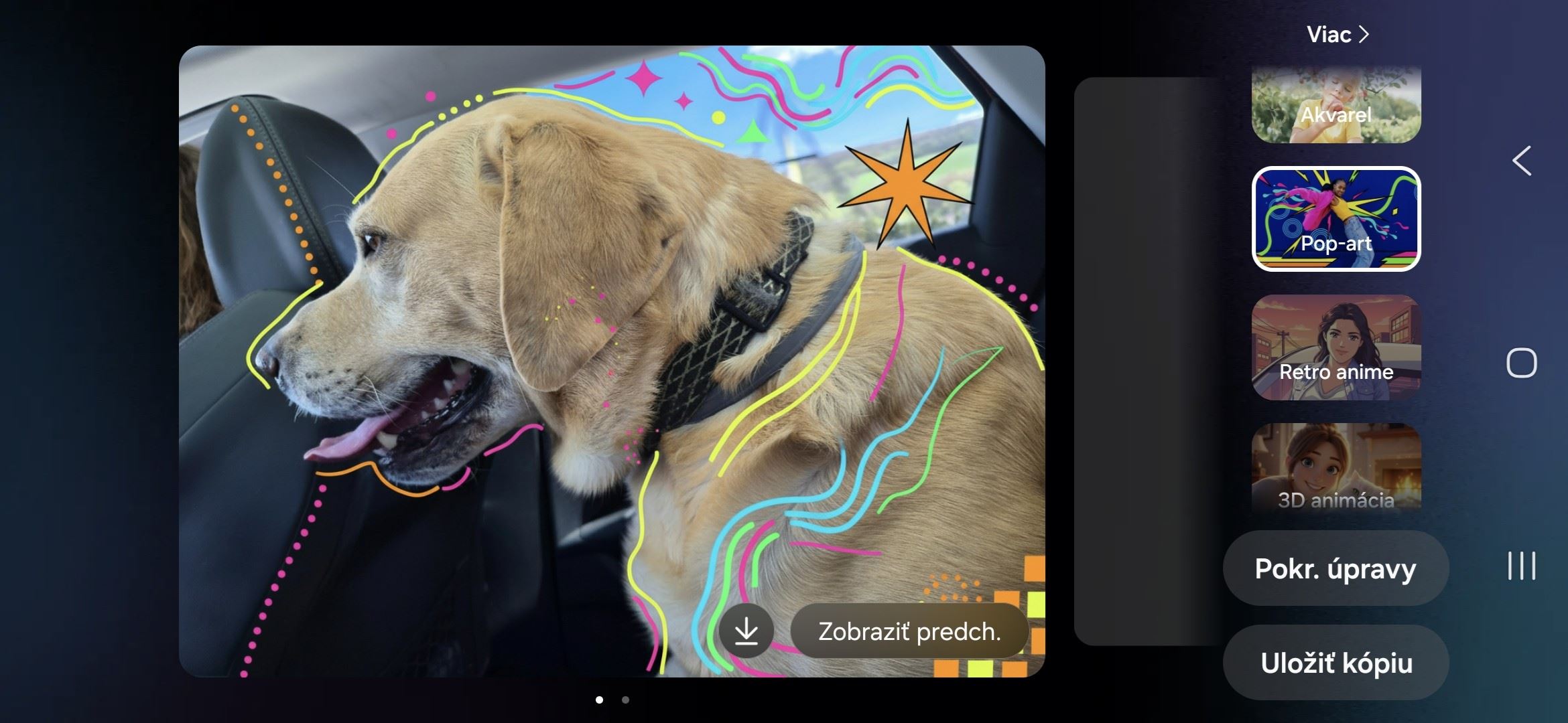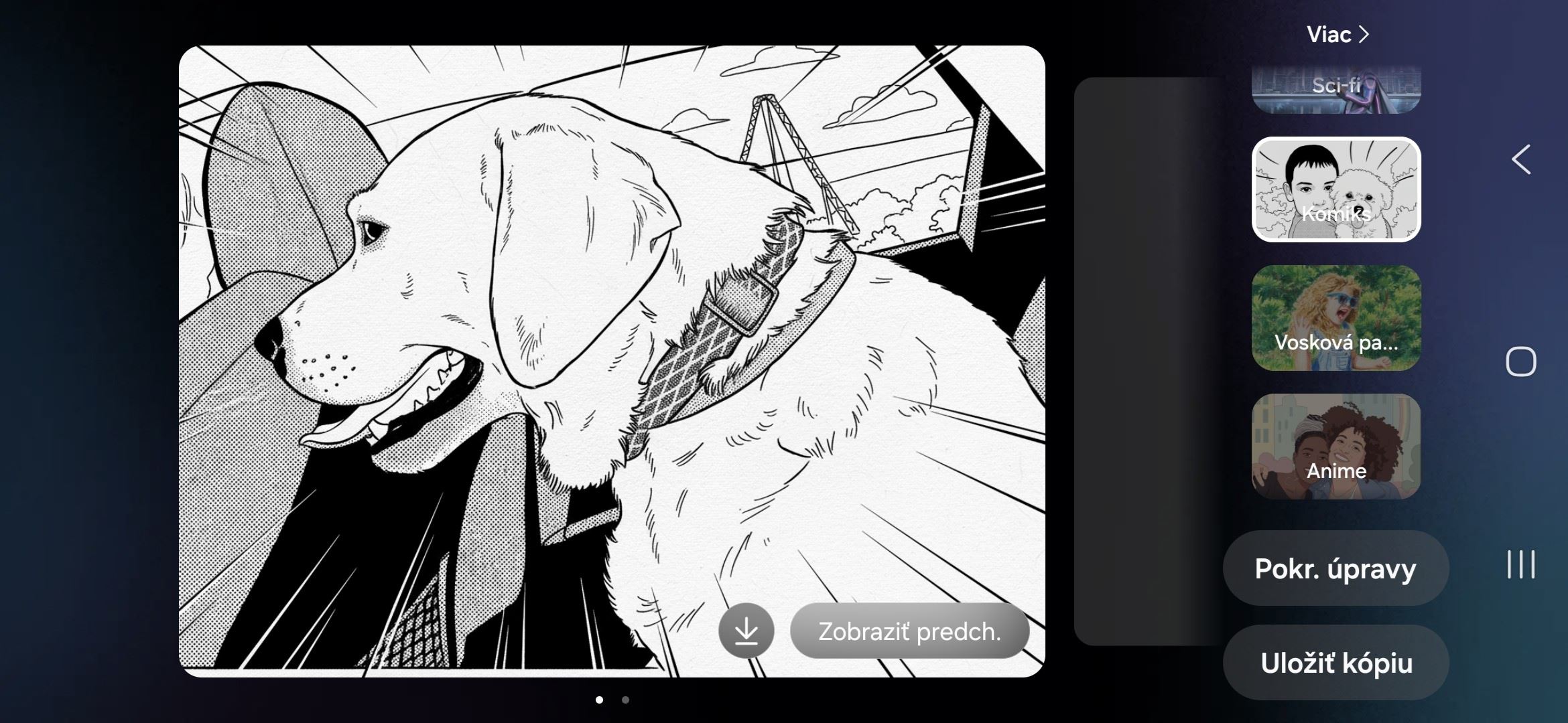 Galaxy S26 a S26+ vedia pracovať aj so štýlom samotnej fotografie. Bežný záber tak nemusí zostať len klasickou fotkou, ale dá sa pretvoriť do kreslenejšej, ilustratívnejšej alebo výraznejšie štylizovanej podoby. V praxi to znamená, že z jednej snímky môžete spraviť napríklad obrázok v komiksovom duchu, pop-art verziu alebo výraznejšie upravený 3D render.
