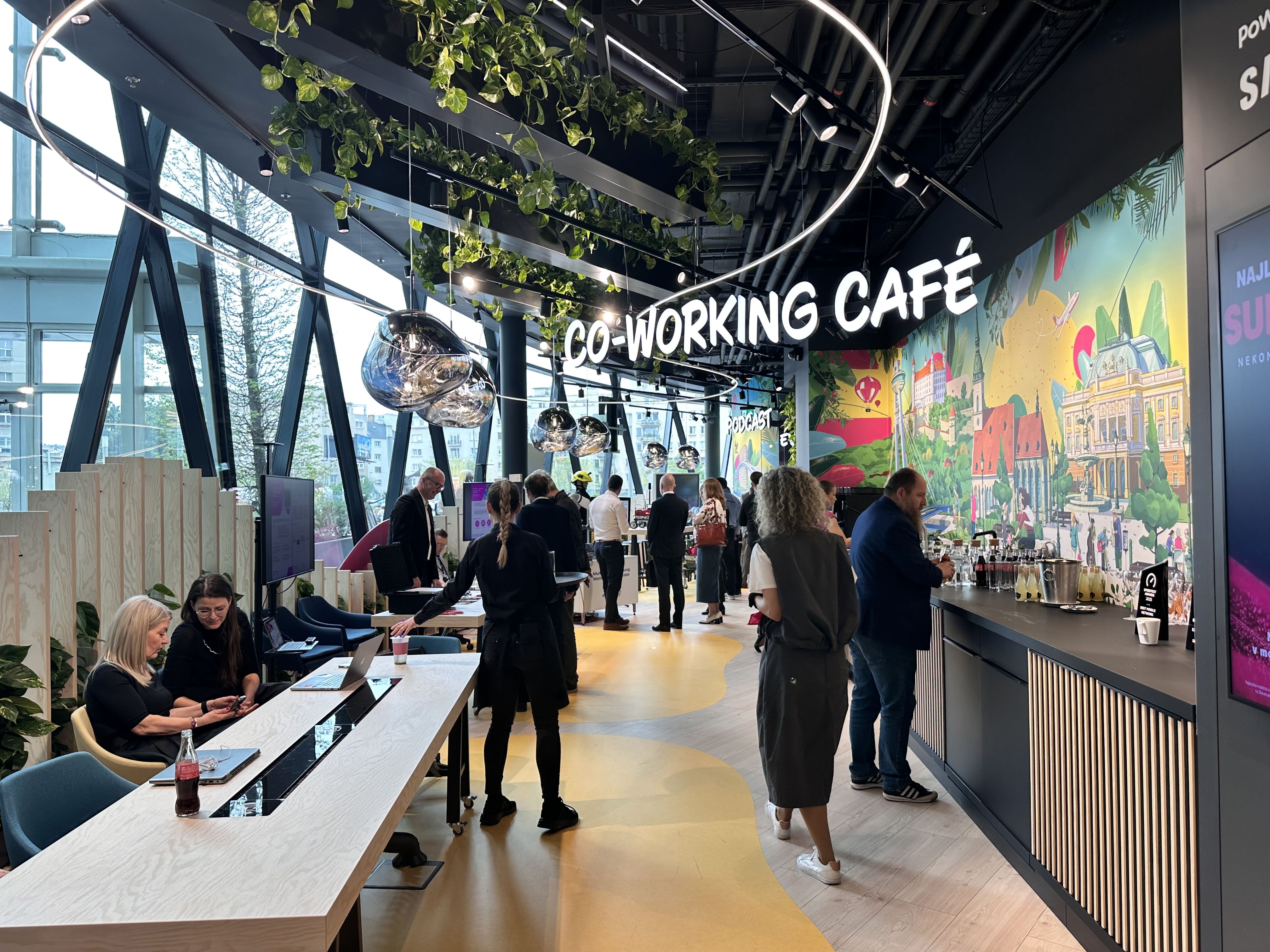 Nový priestor s rozlohou vyše 400 m² má bližšie k modernému kultúrnemu centru než klasickej operátorskej predajni. Dominantou je Event Room - konferenčná sála v ikonickom presklenom „vajíčku" Eurovei s kapacitou 50 ľudí a profesionálnou AV technikou. K dispozícii je aj co-workingový priestor, podcastové štúdio, herná zóna s PlayStationom a VR, či Multi sensory Room - senzorická miestnosť na relax a sústredenie.