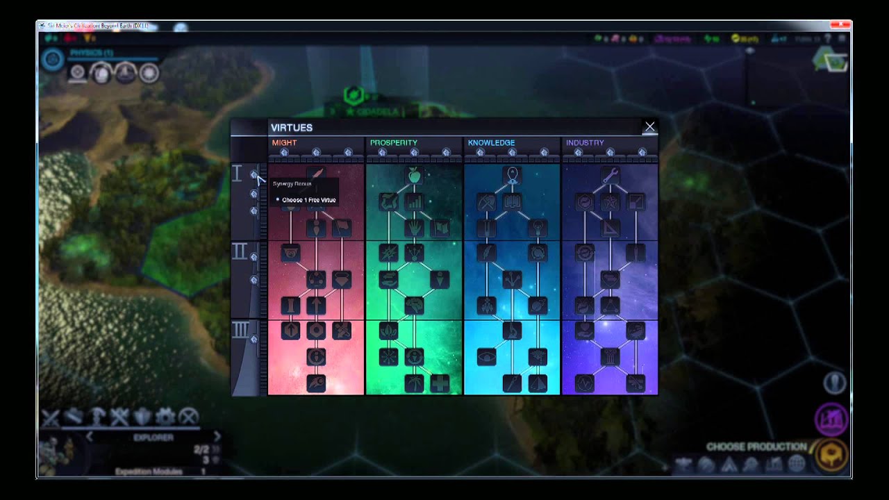 Počas streamu bol okrem tohto taktiež priblížený Virtues systém. Ten je napokon veľmi podobný systému sociálnej politiky z piatej Civilizácie, kde si môžete vybrať zo štyroch možností, čomu sa bude vaša spoločnosť venovať - sile, prosperovaniu, vzdelaniu či priemyslu, no môžete ich aj kombinovať.