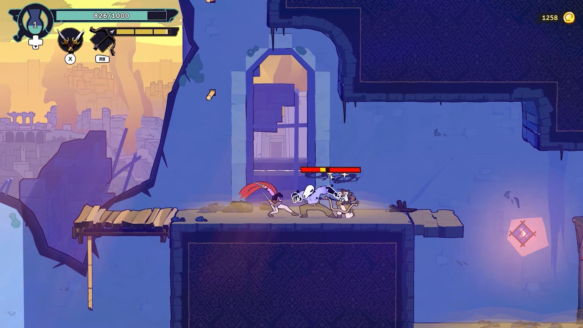 Niekde nájdete mince, za ktoré si v priebehu svojho runu môžete kúpiť zbrane či schopnosti. Okrem šable máte aj zbrane na diaľku, ako sú luky či čakram. Prípadne otvoríte truhlicu už priamo s vybavením, takže si môžete zobrať silnejšiu šabľu s dodatočnými efektmi. Napríklad nepriateľ začne horieť, keď doňho kopnete. Časom sa tak budete zlepšovať a zistíte aj to, ktoré veci vám v hre viac sadnú a oplatí sa ich použiť, respektíve aj ako. Tieto veci si však neprenášate. Zomriete a prídete o nej. Existujú však ale aj časti výzbroje a výstroje, ktoré si môžete so sebou vždy zobrať ďalej, takže časom už s týmto počiatočným progresom nebude taký problém.