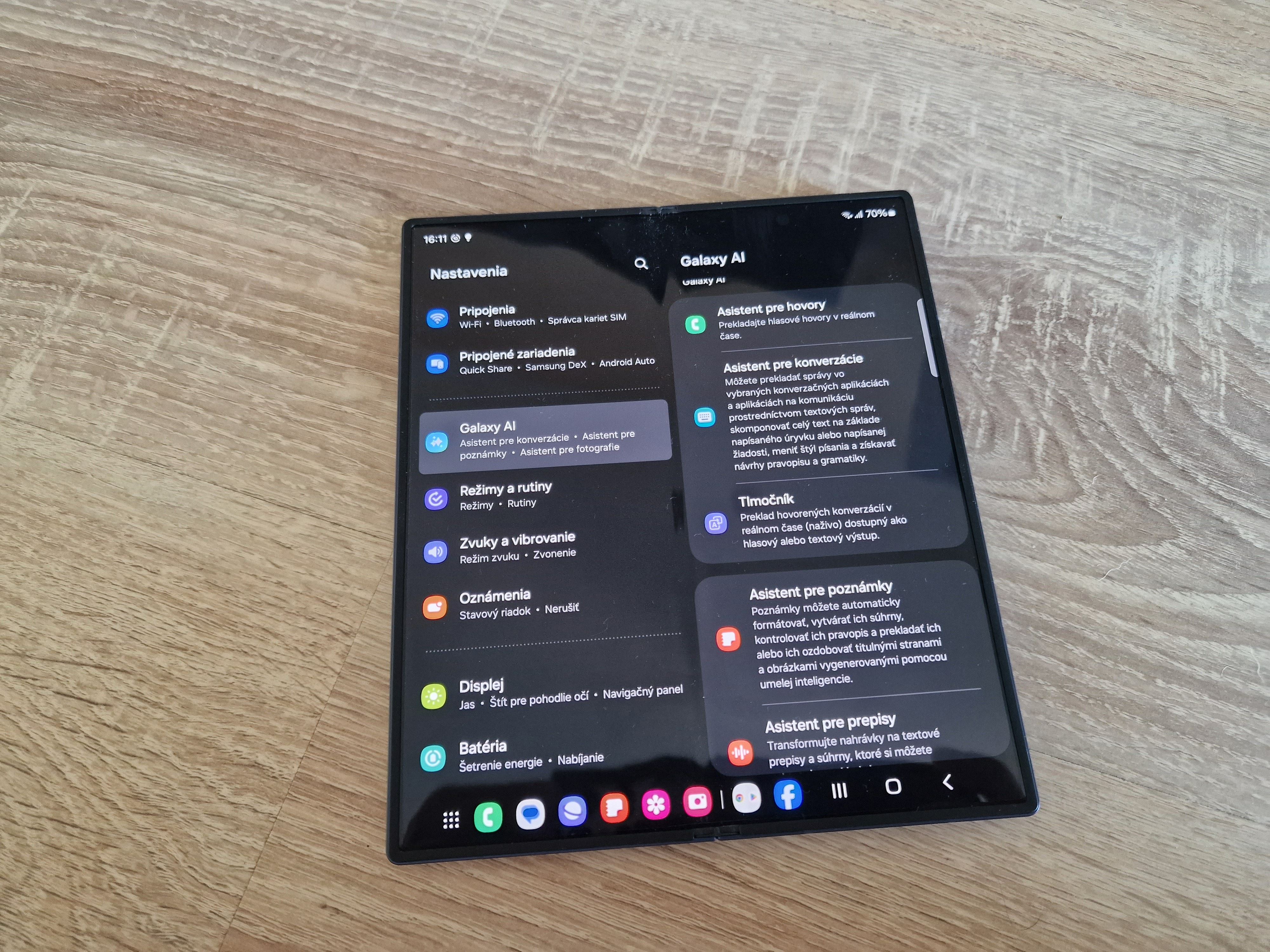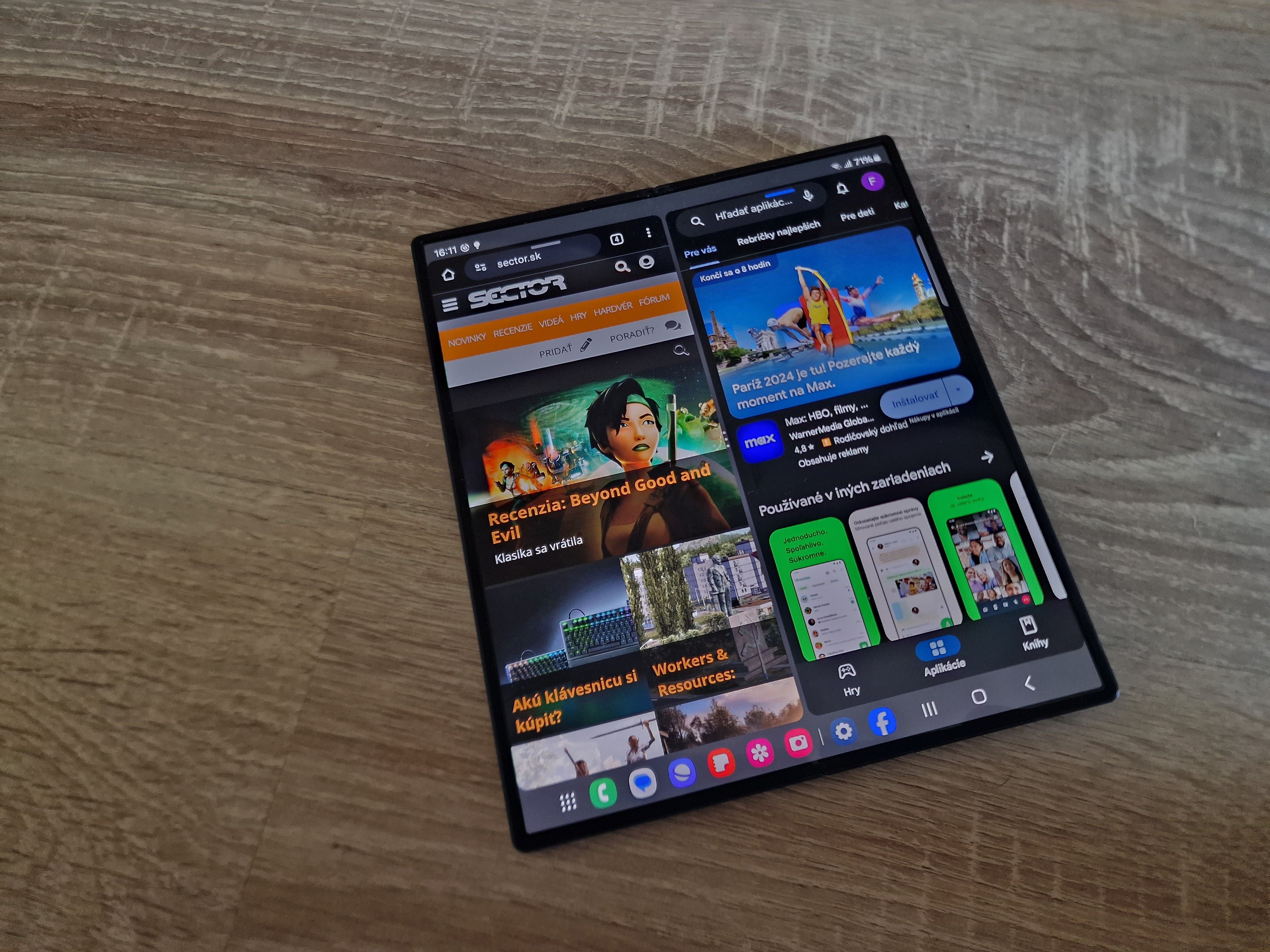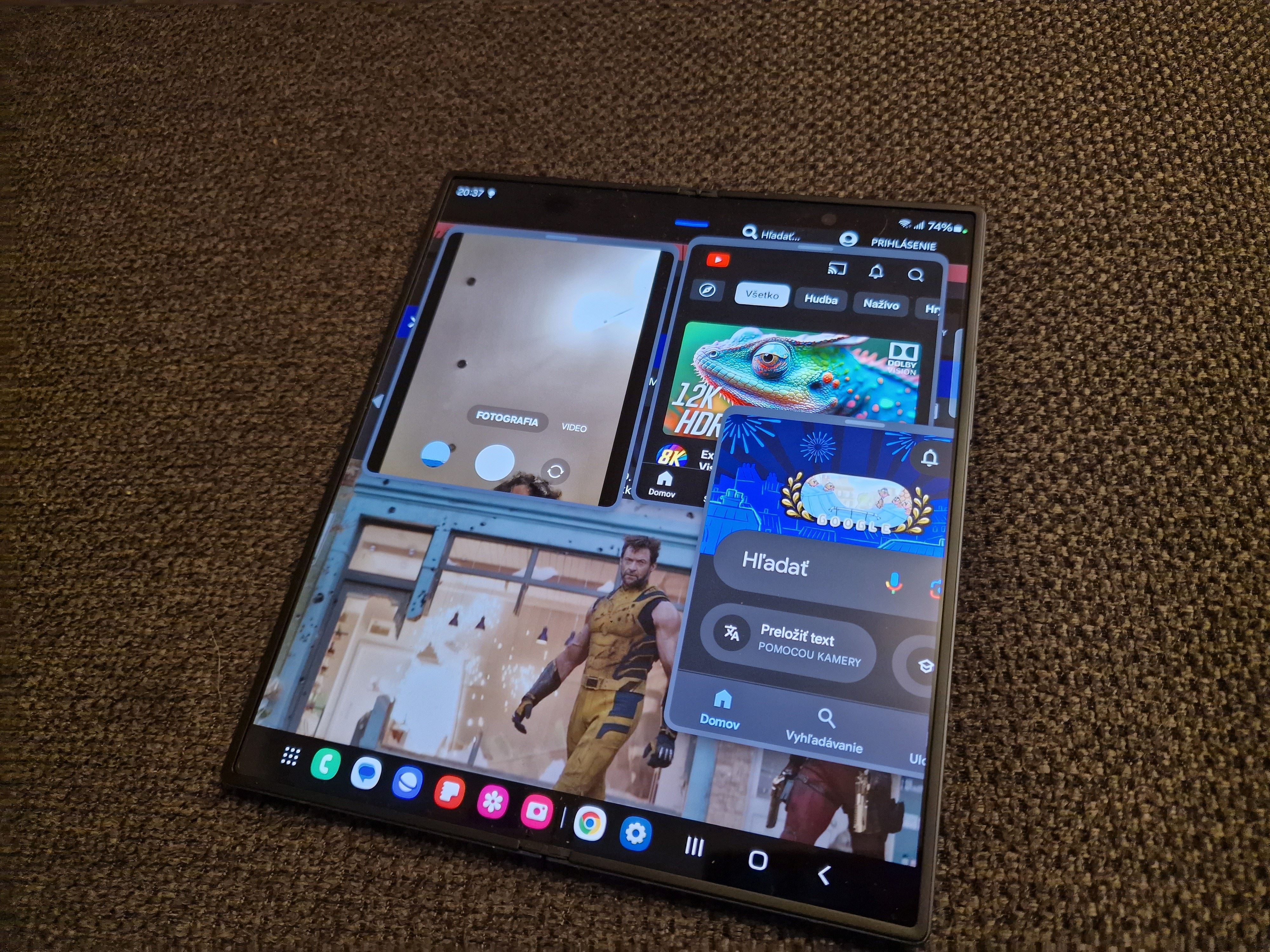 Na vnútornom displeji tak viete pracovať ako na desktope, kde máte rovno spodnú lištu s aplikáciami a napríklad aj browser vám rovno zobrazí záložky, čo pekne vylepší efektivitu browsovania. K tomu, ak si niečo otvoríte na prednom displeji a chcete to na väčšej obrazovke, stačí otvoriť a aplikácia sa prenesie na veľký displej. Je to veľmi funkčné a pohodlné.