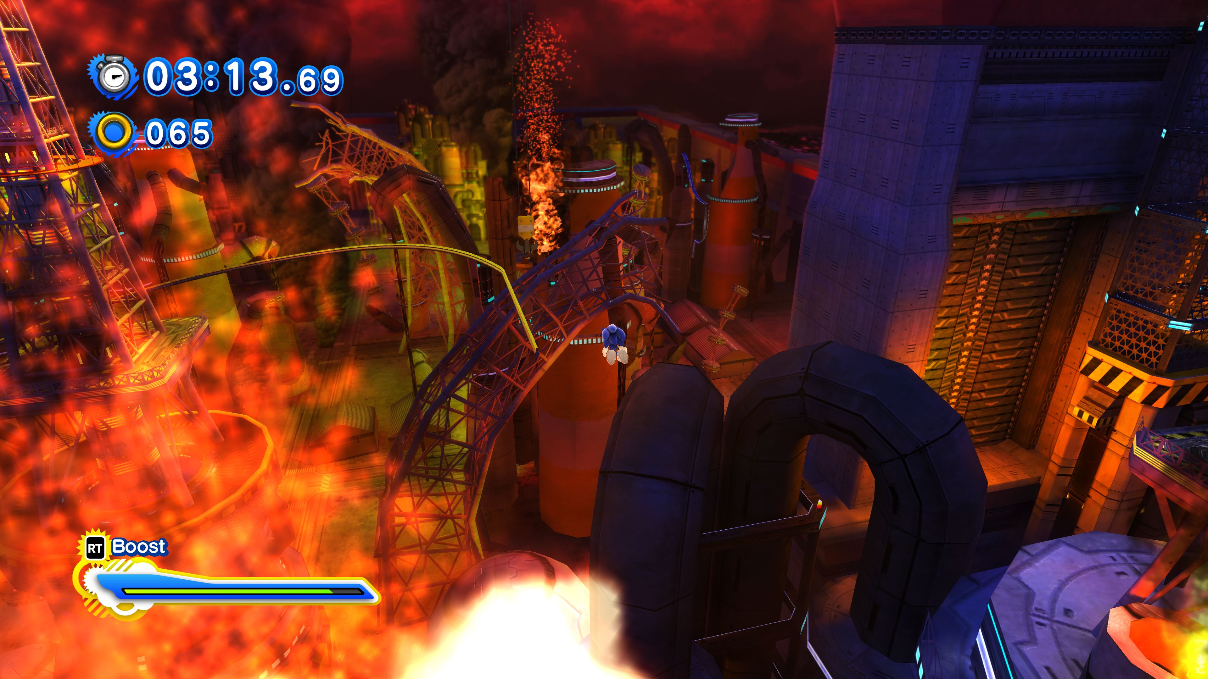 Ale poďme na hrateľnosť. Mohlo by sa zdať, že keď dostanete vlastne dve hry v jednej, 2D aj 3D, tak sa bude hrateľnosť jednotlivých častí líšiť. Ale nie je to tak, v oboch prípadoch sa to hrá veľmi podobne, respektíve tie princípy sa naprieč dekádami a rozmermi až tak nezmenili, takže vlastne nezáleží na tom, či na Sonica nazeráte zboku alebo spoza jeho chrbta. V zásade stále utekáte závratnou rýchlosťou vpred, strácate sa v dianí na obrazovke a skáčete po hlavách nepriateľom, ktorí sú pred vami. Nejaké špecifiká sú tam v každom z týchto dvoch režimov, ale ovládanie a aj hrateľnosť sú z drvivej väčšiny rovnaké.