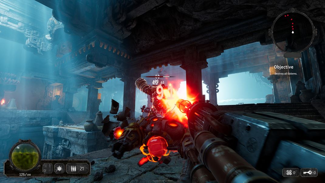 Z nepriateľov padá zlato, ktoré, ako som už spomenul, získate aj z truhlíc. Na vybranom mieste, ak máte šťastie, si viete zakúpiť rôzne vylepšenia - výrazne lepšie útoky, životy, umožňuje to ľahší finiš úrovní. Pri postupe máte možnosť hádzať výbušné granáty, útočiť zblízka a každá zbraň má primárny a sekundárny útok. Spomeniete si teda aj na Unreal Tournament. V každej výprave si môžete vybrať jednu zbraň, neprepínate ju počas hry. Takže na začiatok máte samopal, tam si tiež viete meniť štýl streľby a možnosti odomykáte, samozrejme, postupne. Okrem iného sme sa v preview verzií dostali ešte k brokovnici, veľmi silnému revolveru a k zaujímavej Tesla zbrani.