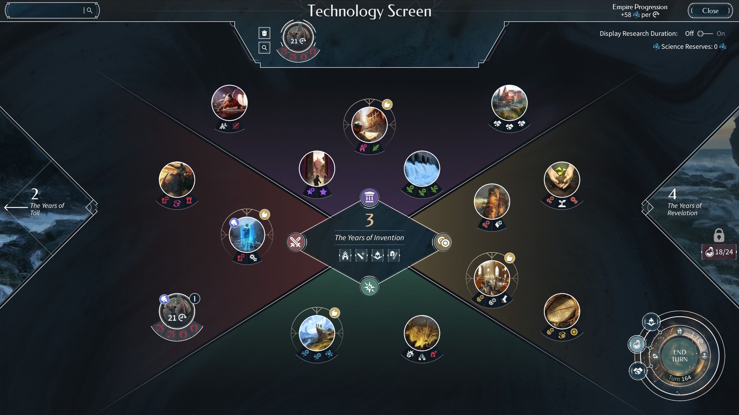 Základy hry pripomínajú sériu Civilizations a podobné ikony 4X žánru, no čím viac idete do hĺbky, tým sú zreteľnejšie rozdiely. Všetko prebieha na ťahy. Začínate s hrdinom a pár bojovníkmi, čo preskúmavajú zatiaľ zakrytú krajinu. Na vhodnom mieste sa usadíte a vytvoríte mesto. To postupne rozširujete o nové dištrikty, za ktoré platíte bodmi vplyvu a môžete tam postaviť rôzne budovy na zvyšovanie príjmov a surovín. Okrem vplyvu je to ešte veda s bodmi na výskum technológií, ktoré sú rozdelené do niekoľkých epoch. Ďalej prach nahradzujúci peniaze a dôležité sú aj body priemyslu, ktoré ovplyvňujú rýchlosť výstavby budov a produkcie jednotiek. Napokon je to jedlo.