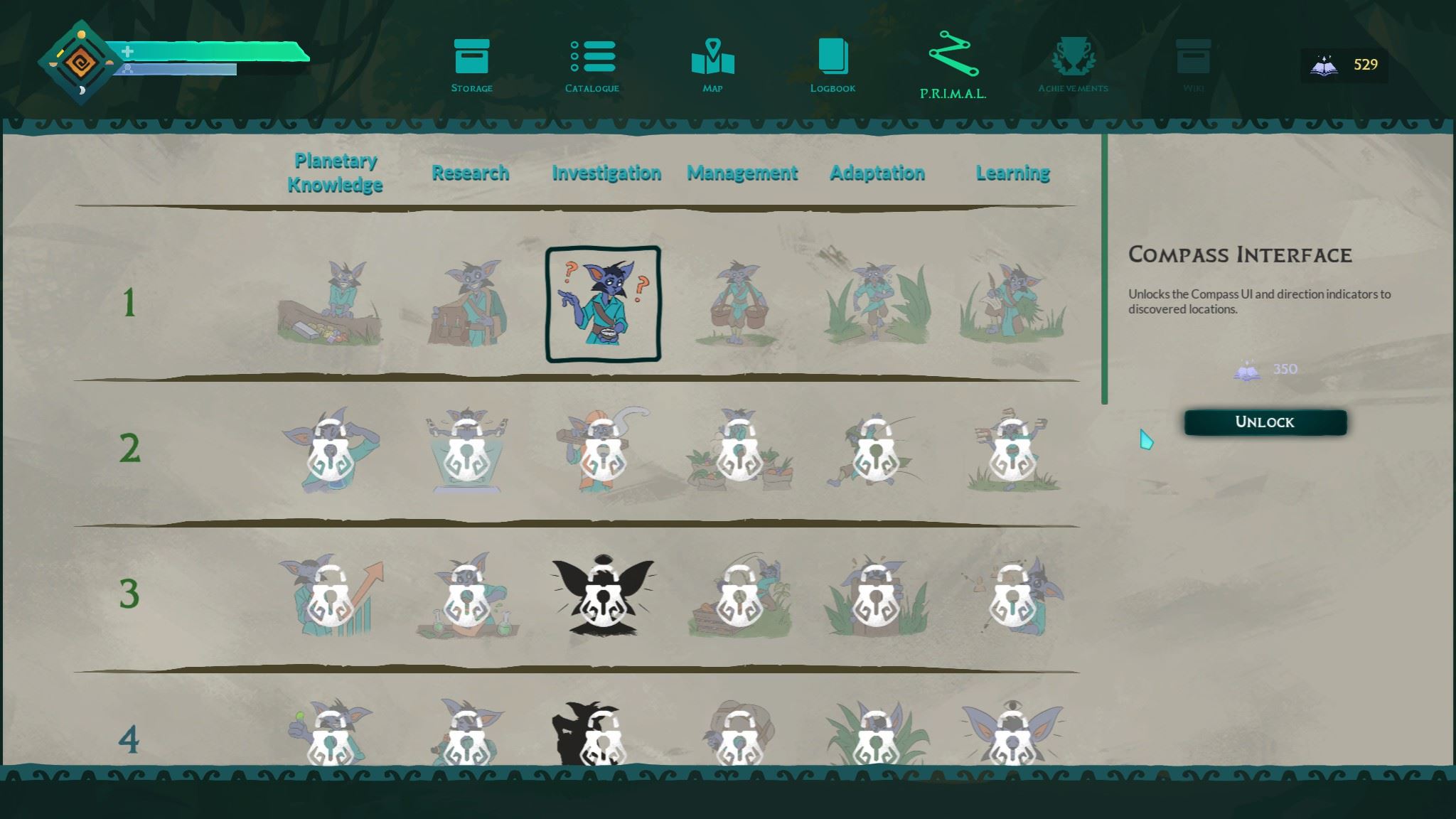 Zatiaľ Astrobotanica nevyzerá na zásadný a prelomový survival titul. Zbieranie surovín, vyrábanie vecí, skenovanie a aj sadenie rastlín sme tu už mali. Dobre, hlavným hrdinom nie je človek, navštívime štvrtohory, stretneme vyhynuté druhy, vyrábame odvary, no všetko z toho je len inou farbičkou namaľovaný obrázok, ktorý už predtým vytvoril niekto iný. Lenže tu na scénu vstupuje systém PRIMAL, ktorý môže titul aspoň trochu odlíšiť od konkurencie. Za všetky prieskumné a ostatné úlohy totiž získavate experience body (a za smrť ich strácate) a tie následne investujete do rozvoja svojej postavy. Skill tree je rozdelený do týchto kategórií: znalosť planéty, výskum, manažment, adaptácia, učenie, vyšetrovanie. Dohromady nás čaká až 60 rôznych schopností na odomknutie, od zväčšenia inventáru, až po výrobu jumpacku.