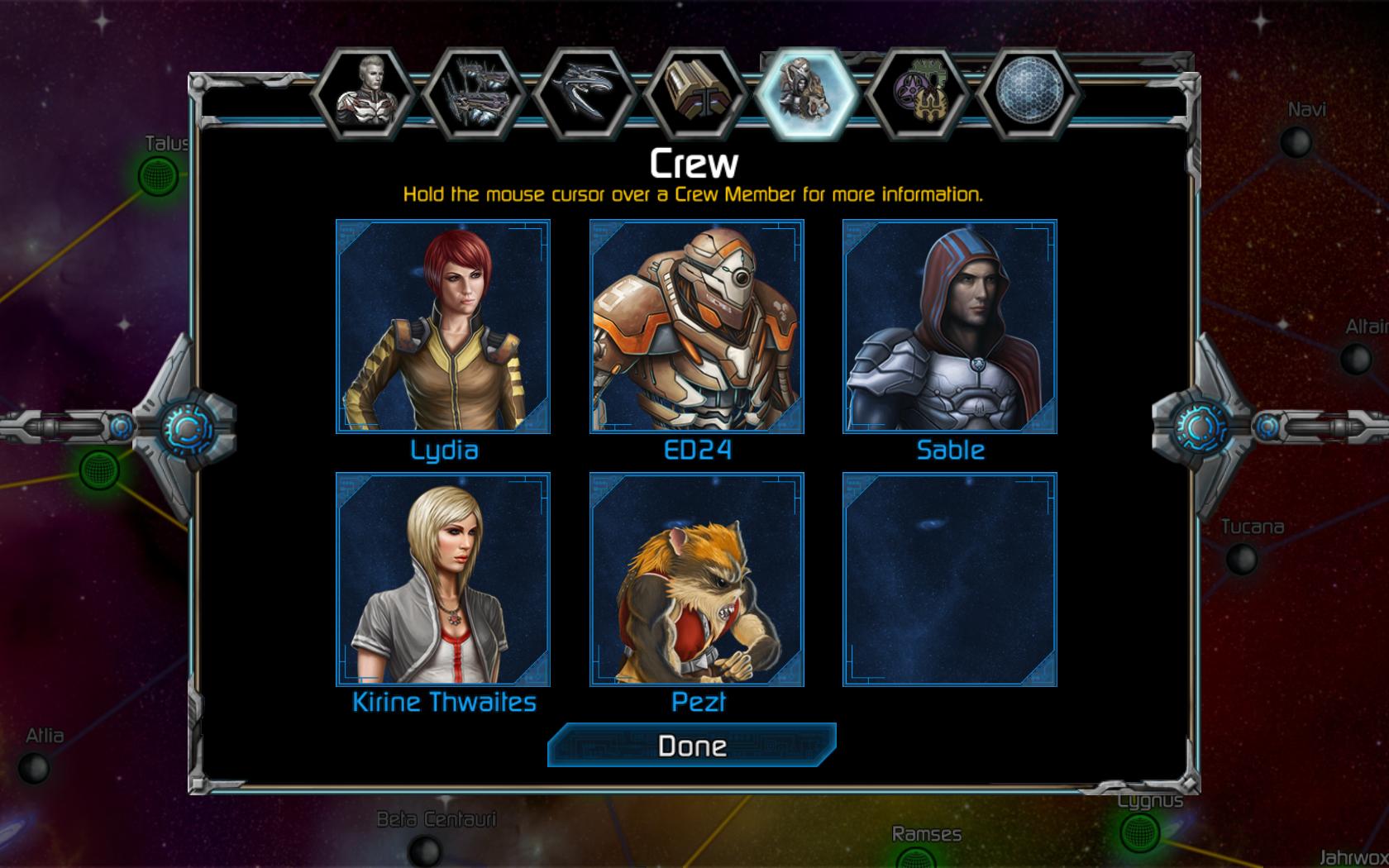 Prvú vesmírnu loď v hre máte zdarma, ale pri putovaní po hviezdnom systéme, rozdelenom na sektory, sa hodí aj nejaká lepšia. Môžete ju získať, napríklad keď narazíte na nefunkčný vrak, ktorý dáte do poriadku po nazhromaždení potrebných surovín. Tie získate ťažbou, ktorá opäť prebieha formou zoraďovania objektov na hexagónovom poli. Na rozdiel od bojov tu však nemáte súpera. Ikony s nákresmi nerastov sa pokúšate zoskupovať dovtedy, kým vám ďalší krok nezablokujú prázdne políčka. Potom získate, čo ste naťažili a to sa ocitne na vašej lodi, ak máte dosť úložného priestoru. Suroviny sa dajú predať na obchodných staniciach, pričom ceny sa líšia v závislosti od dopytu a ponuky. Treba si dávať aj pozor na kontraband, pretože vás môžu zastaviť hliadkujúce lode a dôjde k zbytočným bojom a pohnevaniu neutrálnej či spriatelenej rasy, alebo frakcie. Vám sa suroviny hodia na výrobu novej výbavy lode. Ak máte potrebný projekt a zdroje, zas je čas na hexagónové pole, kde pre zmenu musíte zostaviť skupiny podľa požadovaných kritérií. Ak sa vám to podarí, máte nový laser či pohonný systém, ktorý môžete nainštalovať do lode. Tieto vecičky sa však dajú aj kúpiť a cena sa dá zjednávať.