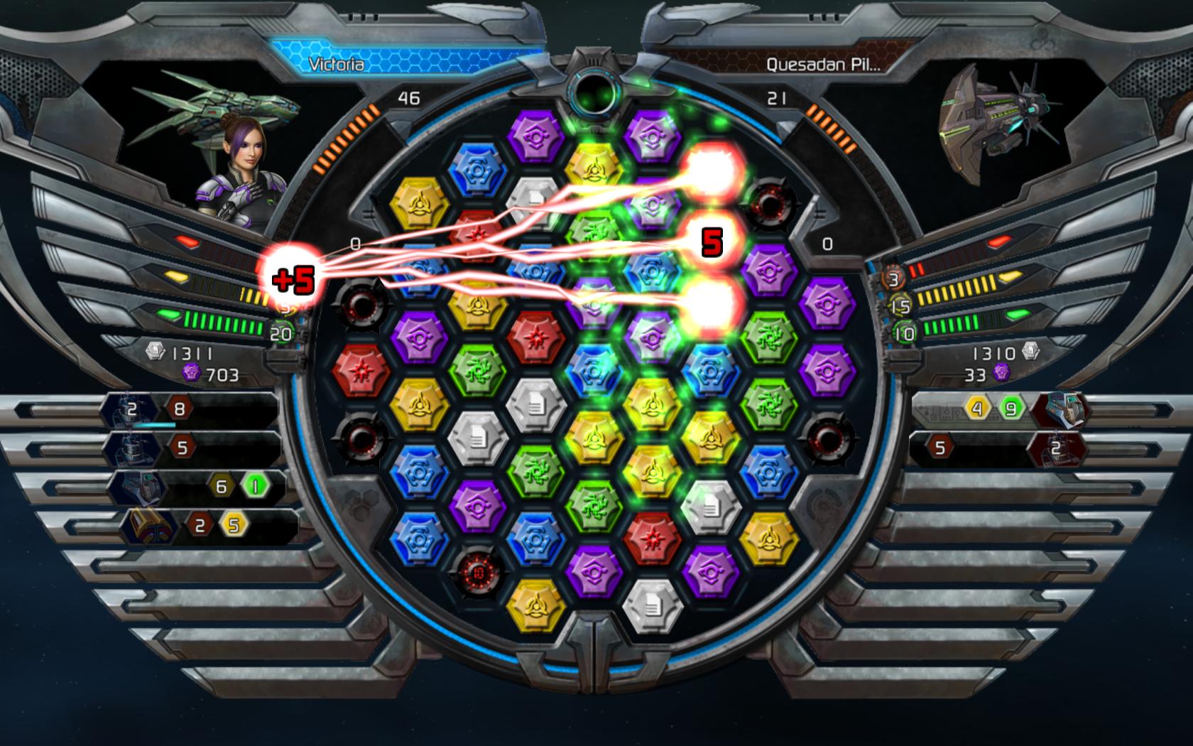 S novým univerzom samozrejme príde na rad aj nový hrdina, ktorý namiesto plátového brnenia a kúziel používa moderný pohodlný odev a počas boja sedí v teplej kabíne svojej lode a pečie nepriateľov lasermi. Boje sú aj tentoraz riešené presúvaním a zoskupovaním rôznofarebných elementov a doplnkových prvkov, ktoré vypĺňajú priestor uprostred obrazovky. Tentoraz tvorcovia zvolili hexagónové pole a zodpovedajúce tvary objektov, ktoré je treba presúvať tak, aby tvorili minimálne trojicu zhodných prvkov v línii. Ak sa podarí spojiť viac rovnakých kúskov, efekt sa samozrejme zosilní a dokonca môže byť hráč odmenený extra ťahom. Boj je totiž delený na kolá, kde striedavo uskutoční úkon na bojovom poli hráč a jeho protivník a to samozrejme až kým niekto nezvíťazí. Pritom vždy je minimálne jedna možnosť, ako vytvoriť líniu (často je ich viac) a hráč nesmie presunúť objekt tak, aby tým nevznikla nejaká skupina.