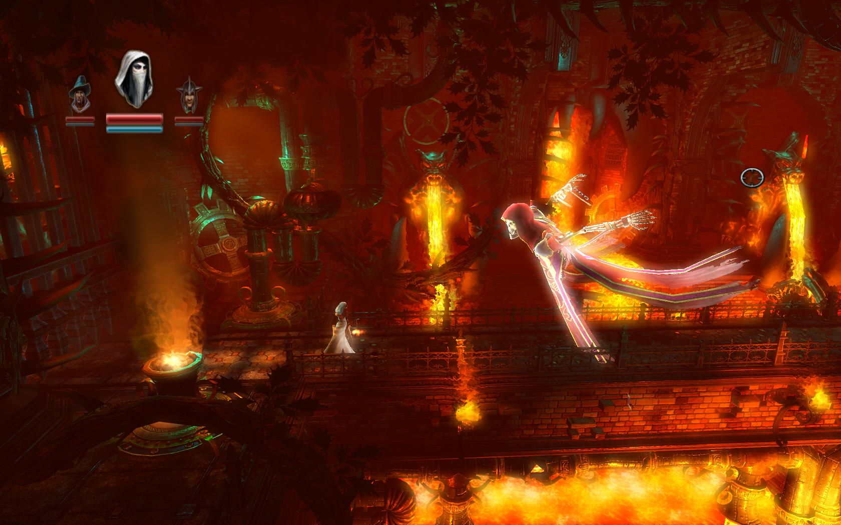 V hre postupne navštívite niekoľko rôznorodých lokalít od astrálnej univerzity, cez kryštálové jaskyne, dračie pohrebisko, starobylé ruiny, podzemné bludiská, prales, až po žeravú vyhňu. Dobrodružstvo v singleplayeri absolvujete so všetkými tromi postavami, ale aktívna je vždy len jedna. To znamená, že si ich prepínate podľa potreby a prekážok, ktoré pred vami stoja. Je tu však ešte kooperačný režim, kde každého hrdinu ovláda iný živý hráč a problémy riešia všetci spoločne. Na to ale potrebujete rôzne ovládače, v prípade PC napríklad jeden hráč používa myš a klávesnicu a ďalší gamepad.