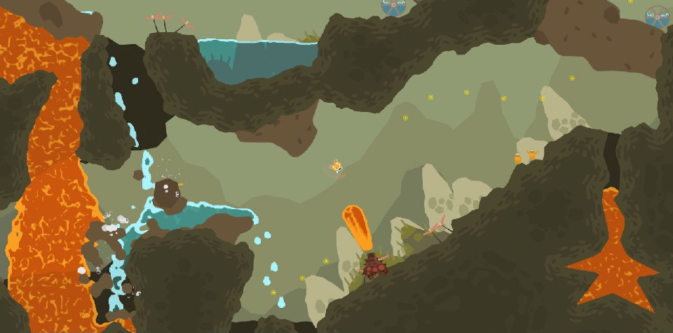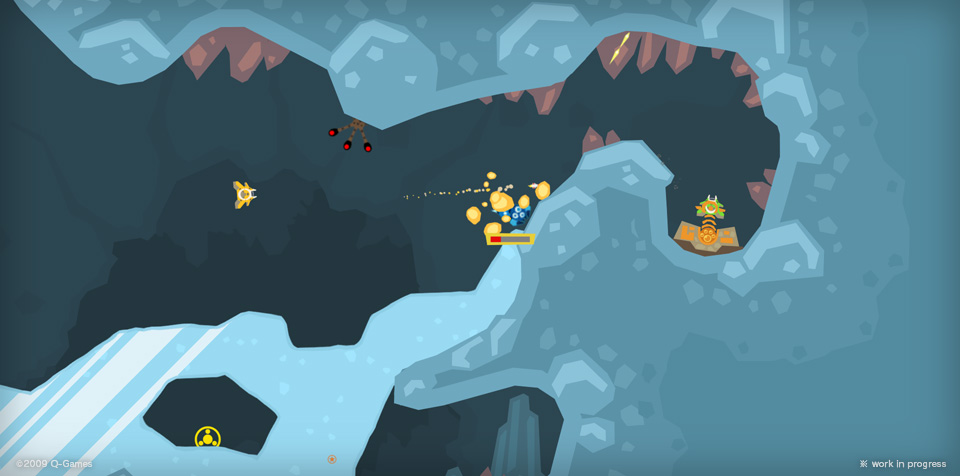 Reakcia nenechá na seba dlho čakať a o pár sekúnd je z nebezpečnej lávy kopa skál. Opatrne ich rozvŕtate raketami a panáka zachránite. Vysúšanie vodných plôch funguje na podobnom princípe, len do vody hádžete zase plod ohnivej rastliny, alebo použijete mech, ktorý dokáže absorbovať obe tekutiny. A aby to nebolo až také jednoduché, raketke sa zahrievajú štíty, ak sa nachádzate v bezprostrednej blízkosti lávy. Voda ich naopak ochladzuje. To však nie je všetko. Okrem základnej výbavy – háku a rakiet – sú v leveloch rozostavené terminály, ktoré vám jednorazovo prezbroja plavidlo.