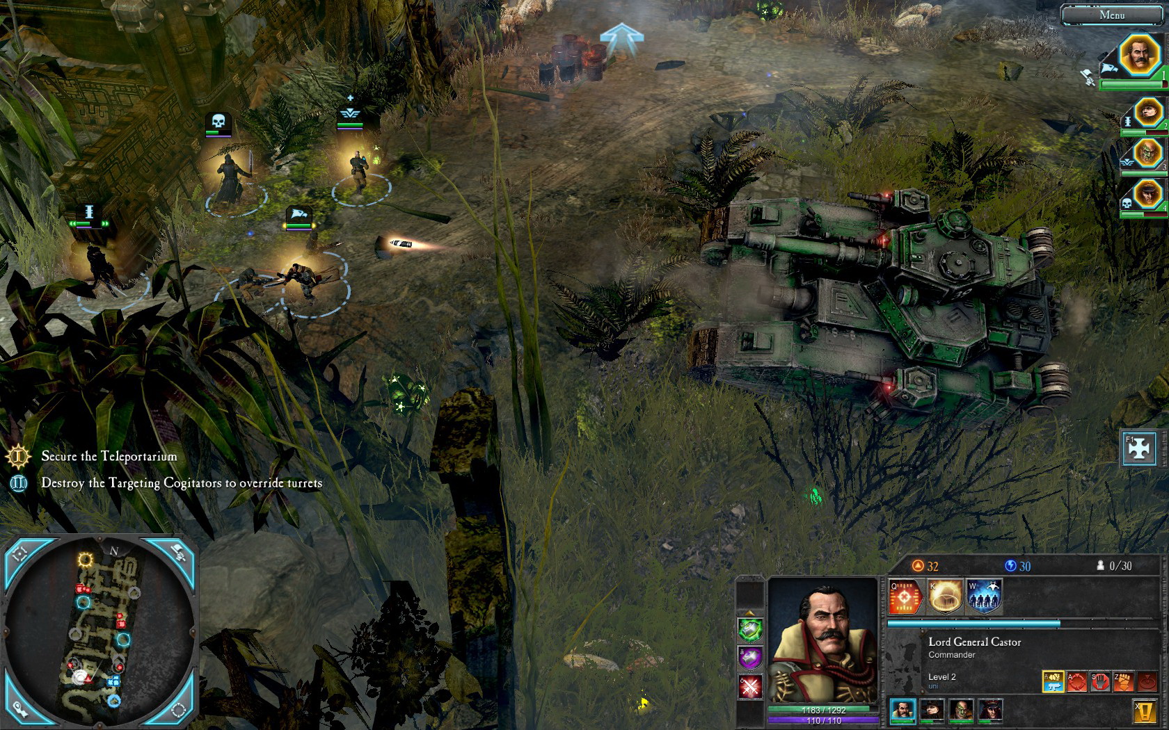 V boji určite netreba podceňovať nového rivala Imperial Guard. Základná jednotka, gardisti, možno nepôsobia príliš nebezpečne, ale po doplnení o seržanta a komisára majú v boji na diaľku slušný efekt. Navyše stavajú laserové vežičky a barikády. A keď im asistujú dvojnohí mechovia sentineli, ktorí sú dostupní už na základnej úrovni, je to už solídna úderka. K tejto zostave sa pridajú katachánski diabli s náložami, storm trooperi s viacerými možnými vylepšeniami zbraní a bojovníci s obrími postavami ogryn squad. Skutočná sila impéria však spočíva v technike, ktorú reprezentuje ťažká artiléria s efektnými raketami, tank Leman Russ a na vrchole mega tank Baneblade. V čele tejto čeliadky stojí trojica rôzne orientovaných hrdinov: Inkvizítorka Adrasia je agresorka s psychickými útokmi; lord komisár je slušnou podporou s bonusmi pre boj nablízko a možnosťou utajenia; a lord generál má presnú mušku, môže využiť granátomet a sprievodné družstvo a tiež doliečuje spojencov. Samozrejme, aj táto strana má unikátne sily a tak vyvoláva elitné jednotky, alebo môže v teréne umiestniť vlastné bunkre a útočné veže.