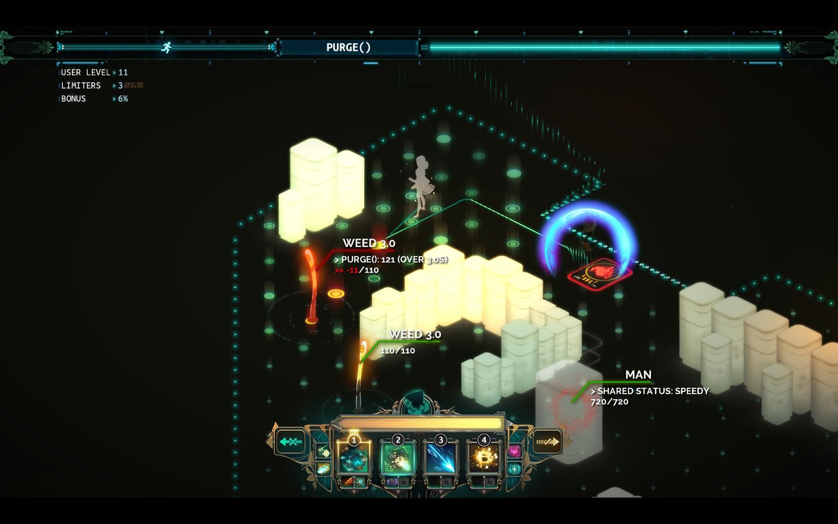 Po boji je optimálne vyhľadať najbližší prístupový bod, kde manipulujete so všetkými funkciami, ktoré máte v zásobníku. Preťažené funkcie nahradíte inými, ktoré máte v zálohe. Tie poškodené sa postupne opravia po návšteve viacerých prístupových bodov. Funkcie ale nemusia byť len aktívnym prvkom, ktorý predstavuje priamy útok alebo bojovú schopnosť. Do aktívnych slotov napasujete len štyri funkcie, no potom sú tu ešte upgrade a do tretice pasívne sloty. Upgrade poskytujú pridaný efekt k útoku, napríklad vytvoria pomocné bloky, ktoré zvýšia oblasť účinku alebo oslabia nepriateľov. Pasívne prvky zas pridajú kroky pri každom ťahu a plánovaní alebo umožnia samovoľnú regeneráciu života.
