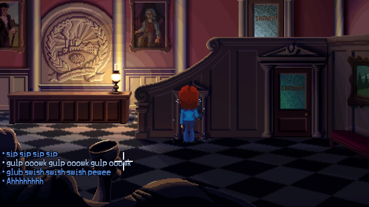 Ako sa chcete dostať záhade na koreň, nájsť povestného psa (samozrejme ho zakopal záhradník, ktorý tu mimochodom nechýba a je… je proste skvelý, lebo neustále kope. A čo? No predsa jamy!) odklikáte si dlhé hodiny a stretnete množstvo bizarných postáv. Šerif, patológ a správca hotela v jednej osobe je len postupne nudiacim začiatkom, nasleduje podivná veštica, ktorá prekliala klauna za urážky a teraz si nevie zmyť svoj make-up, svojský opilec, angažovaná novinárka, podivný predavač či jeho konkurentka v „cukrárni”- všetko sú to hláškujúce persóny, ktoré by v iných adventúrach boli za to najlepšie, čo sme v danom svete „prekecli", tu sú všetky postavy vynikajúco napísané. Dialógy s nimi sú úžasné, na každú vetu sa tešíte, nič znudene neodklikávate. Vieme, že Ron Gilbert je perfekcionista, no tento kúsok, ktorý sa uchádzal o našu priazeň na Kickstarteri už tri roky dozadu, je na dnešnú dobu nesmierne prepracovaný. Každý riadok budete hltať očami, vtipy sú poskrývané takmer všade a vás to jednoducho priťahuje k sebe. Nemali sme pocit, že by bola hra príliš utáraná alebo sme sa topili pod tonami balastu. Také pohodové adventúrenie, ktoré si užívate plnými dúškami.