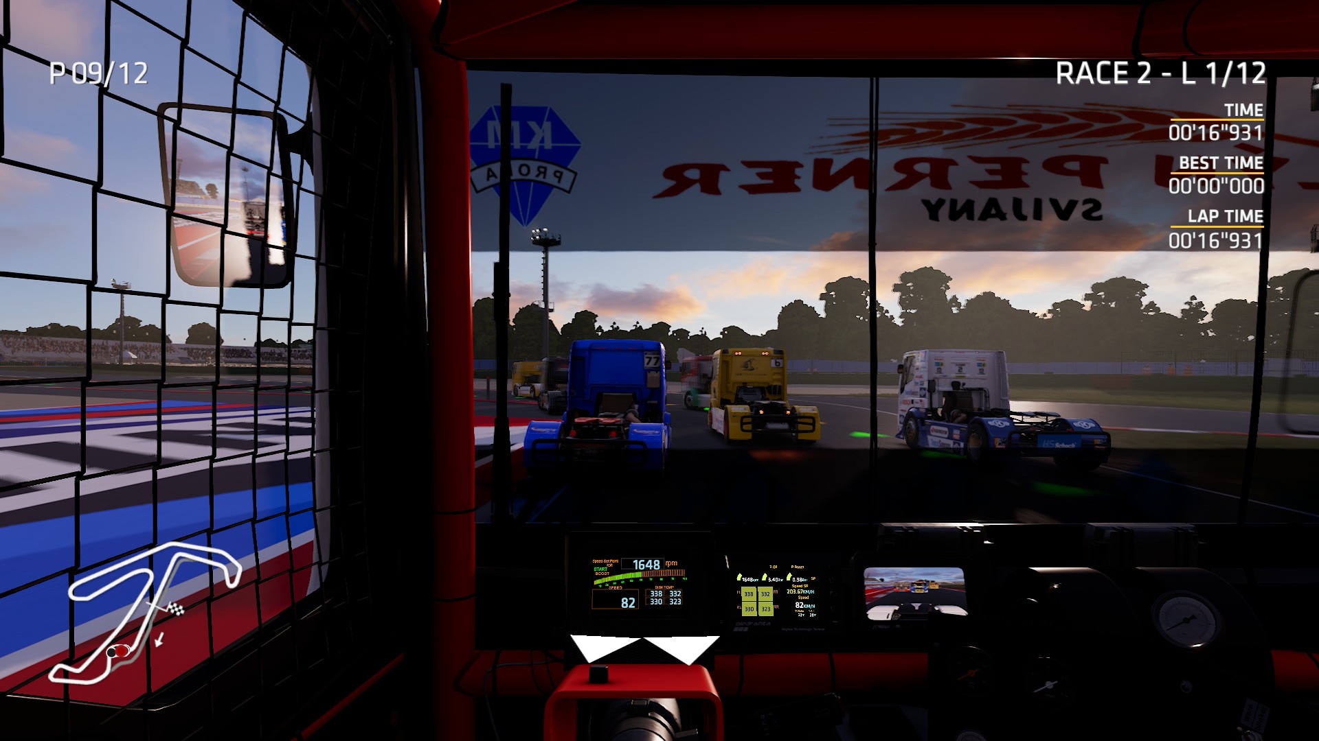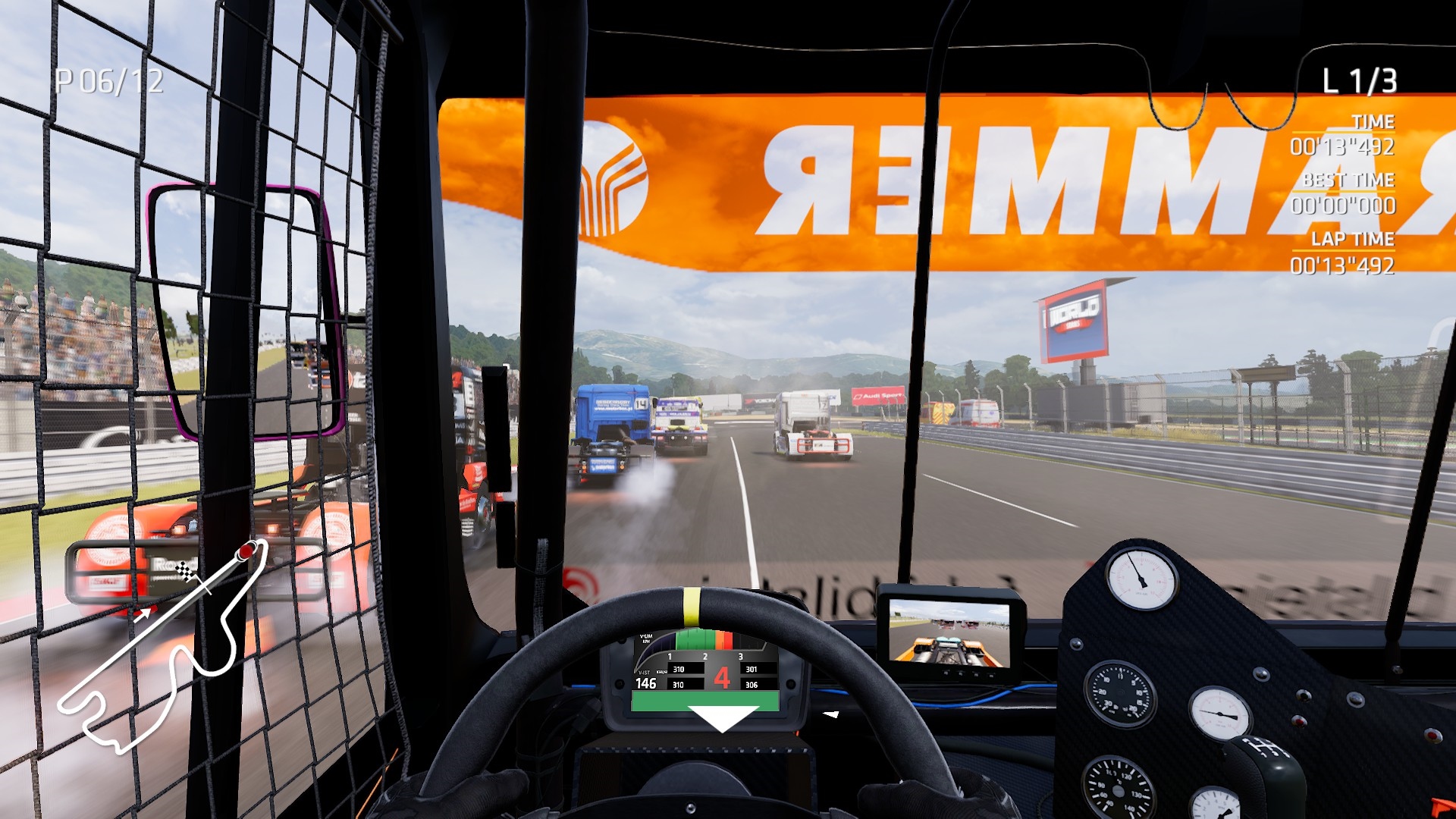 Ak sa však už dostanete na trať, vždy je vhodné ju poznať. Dôvodom je aj nie príliš realistická umelá inteligencia ostatných jazdcov. Truck sa totiž správa úplne inak ako bežné auto, s ktorým brázdite virtuálne okruhy. Túto prekvapujúcu skúsenosť získate takmer okamžite. Celková ťažkopádnosť sa prejaví okamžite po zošliapnutí plynového pedálu. Pozvoľná akcelerácia či maximálka cez 150 km/h nie je žiadna sláva. Akonáhle sa však po 2 tisíckach otáčok prejaví turbo, je to iná káva. Okamžite cítite silu stoviek konských síl, musíte pracovať s plynom či prevodovkou s citom. Nie je nič horšie ako dostať kamión do nekontrolovaného šmyku, hlavne pri výjazdoch zo zákrut. Ono to totiž nie je len tak a zákruty musíte vyberať citlivejšie a hlavne správne odhadnúť brzdnú dráhu, ktorá je omnoho dlhšia.