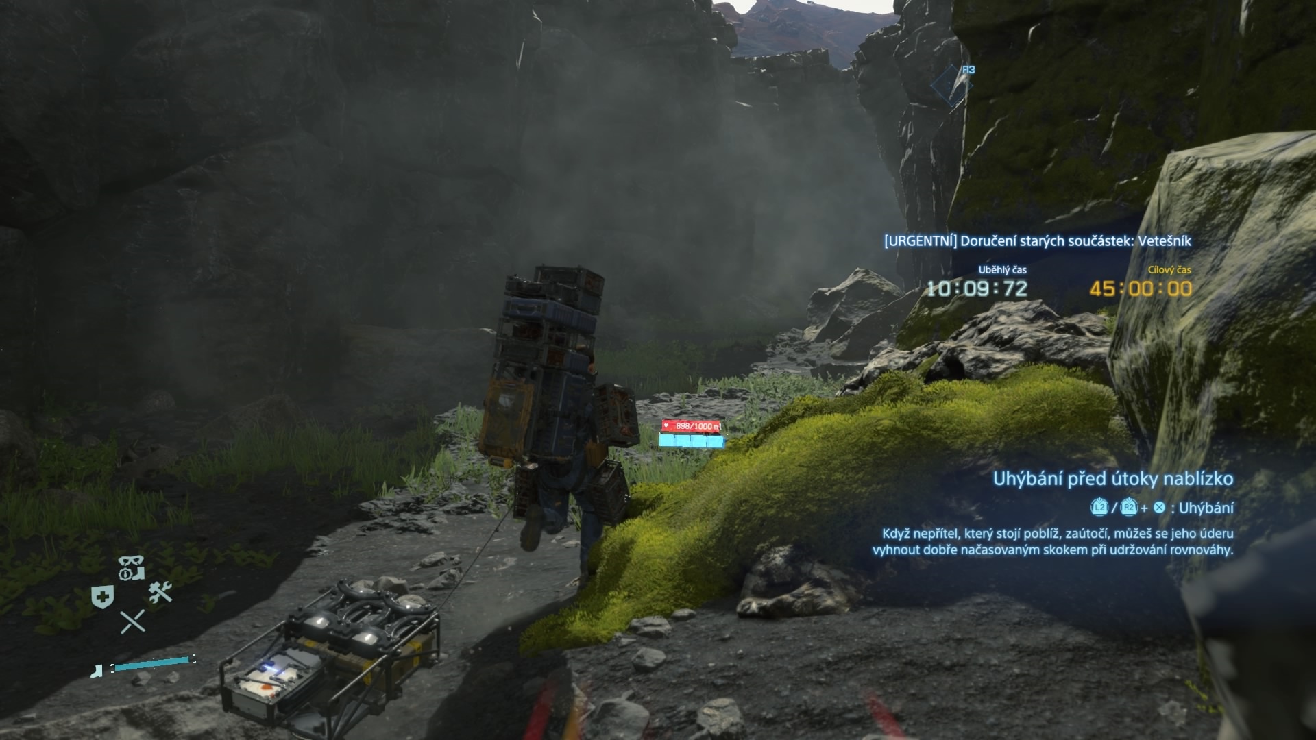 Všimol som si, že reakcie vozidla nie sú vždy okamžité, a teda ak sa auto rozbehne dozadu a vy ho chcete zastaviť, niekoľko pokusov zaberie, kým vôbec kolesá zareagujú na to, čo od nich chcete. Stáva sa to dosť často pri zmene zo spiatočky na pohyb vpred a naopak. To nemusí znieť ako veľký problém, no keď sa už pustíte nejakou trasou, míňa sa vám batéria a ste v oblasti, kde sa nedá stavať a ste ešte ďaleko od cieľa, problém je to už dosť veľký. Musíte auto nechať autom a ísť ďalej po vlastných nohách. Zložitým terénom, s veľkým nákladom a ešte celkom dlhú vzdialenosť. Do toho vám môže ešte prísť stretnutie s BTs a o zábavu máte postarané. A to vôbec nehovorím o tom, keď dostanete náklad citlivý na poškodenie, nárazy, prípadne vodu. Alebo ho musíte doručiť v stanovenom čase. Aj takéto chvíle občas prídu, a tak sa vám situácia môže ešte viac skomplikovať. Byť kuriérom vo svete Death Stranding skrátka nie je vôbec jednoduché.