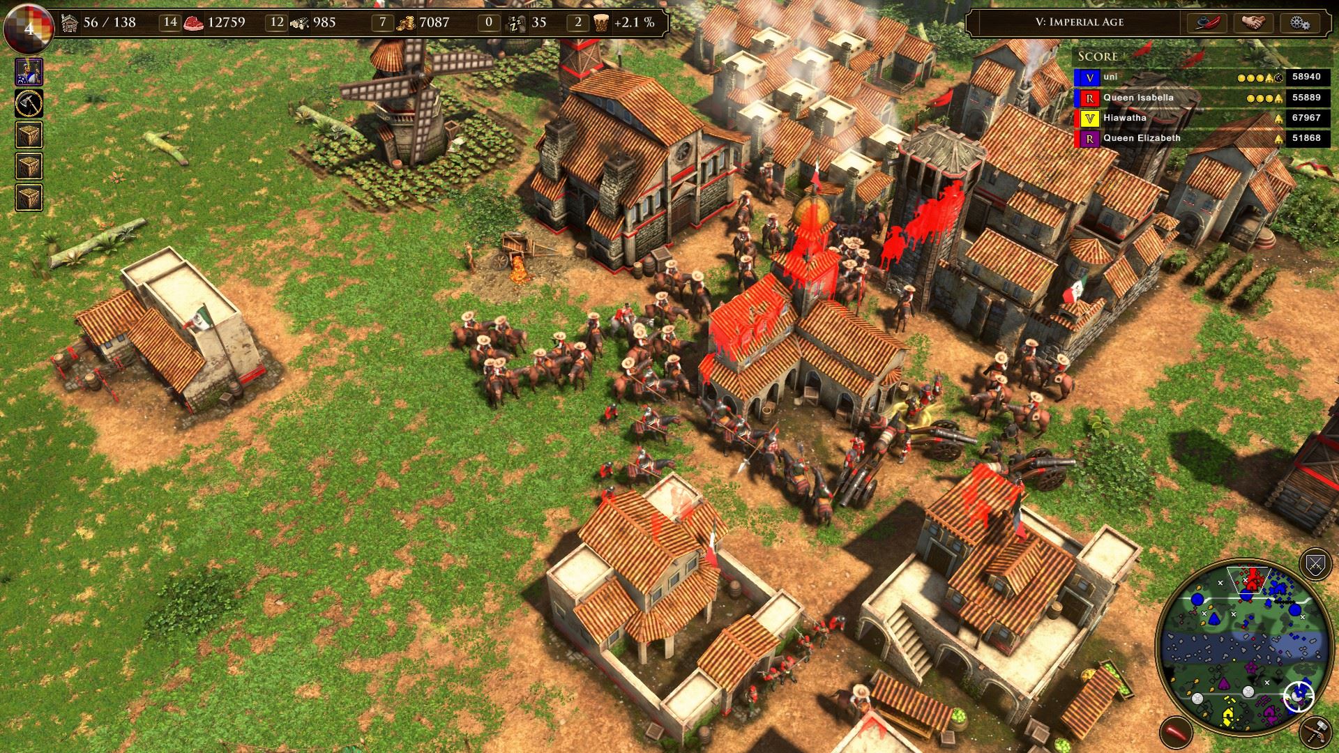 Celá taktika AI je založená len na rýchlej produkcii surovín a jednotiek, ktoré potom v určitých intervaloch bezhlavo posiela ničiť vaše sídlo. Ak jej doprajete viac času, môže vás zaskočiť svojou silou, ale inak je veľmi predvídateľná a schematická. Pri výbere vyššej obťažnosti sa skrátka len zvýši intenzita útokov, ktorým potom ťažšie odolávate. Na novej extrémnej náročnosti sa postup AI nemení, len agresivita nepriateľa je nastavená na maximum a nedá vám vydýchnuť. Tu musím spomenúť perličku - v režime free for all na extrémnej obťažnosti AI protivníci konali už vo chvíli, keď sa ešte len nahrávala mapa. Kým som sa vôbec dostal do hry, už mali súperi nahrané body a na obrazovke mi svietil odkaz, že som porazený, lebo som prišiel o svoje sídlo.