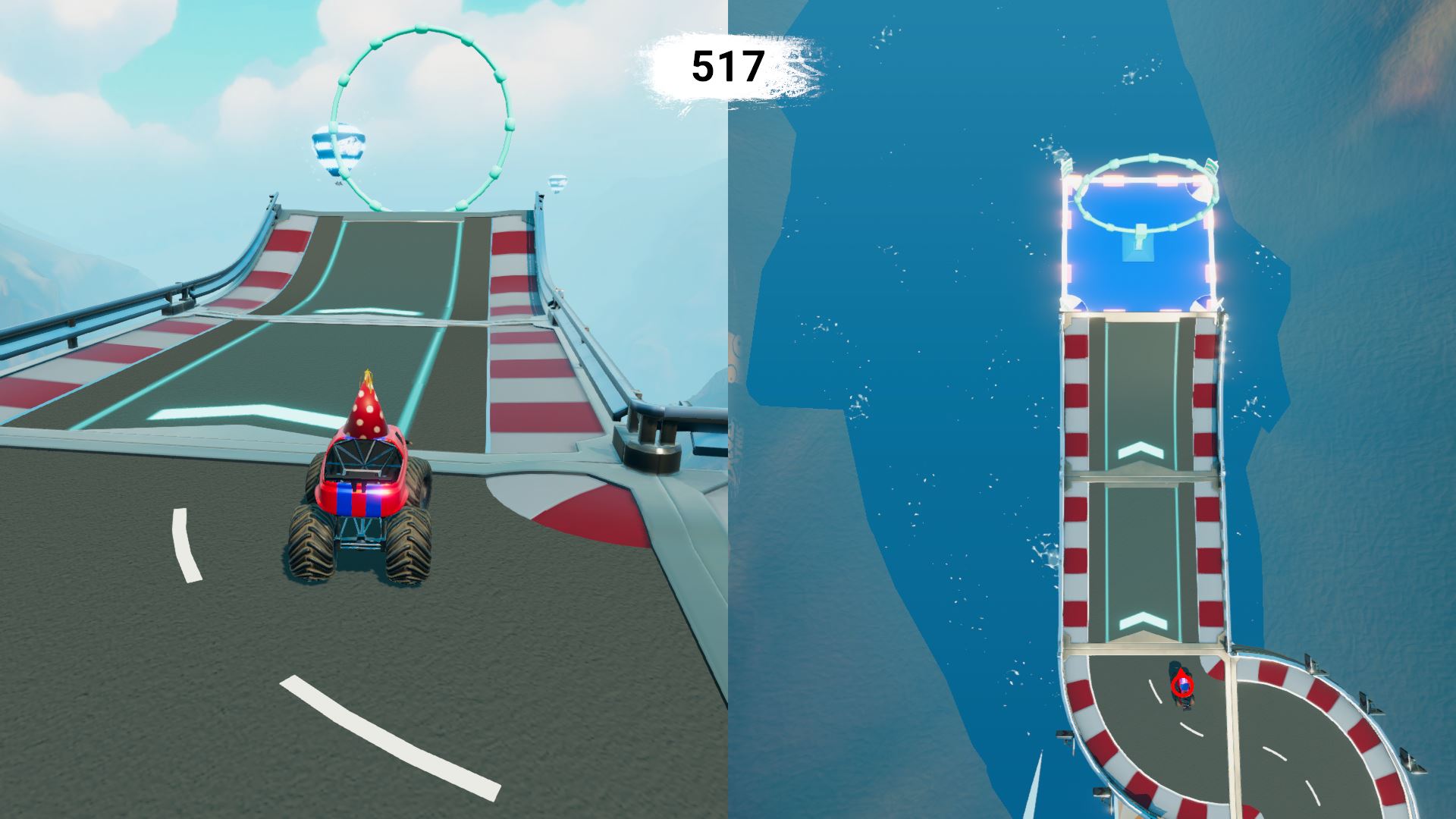 Je tu síce auto, ale nie je to pretekárska hra. Respektíve je, ale pretekáte tu len proti časom seba a ostatných hráčov online. A občas je vašim súperom aj vás spoluhráč. Nikdy totiž neviete, či vám to robí naschvál, alebo nechtiac. Možno ho ale prezrádza ten nešťastne skrytý škodoradostný úsmev. Najlepšie to ale opíšem na príklade dvoch hráčov, keďže ďalší dvaja hráči do toho mixujú trochu viac prvkov. Jeden z vás jazdí autom, druhý zase stavia trať. Problémom však je, že sa tieto dve činnosti dejú súbežne. Takže kým jeden hráč jazdí, druhý tesne pred ním musí stavať cestu vpred. A občas je to doslova pod kolesami. Navyše hráč, ktorý stavia cestu, nemôže len tak vyberať, ako bude cesta vyzerať. Hra vám sama dávkuje dielce cesty a musíte tak pracovať s tým, čo vám hra nadelí.