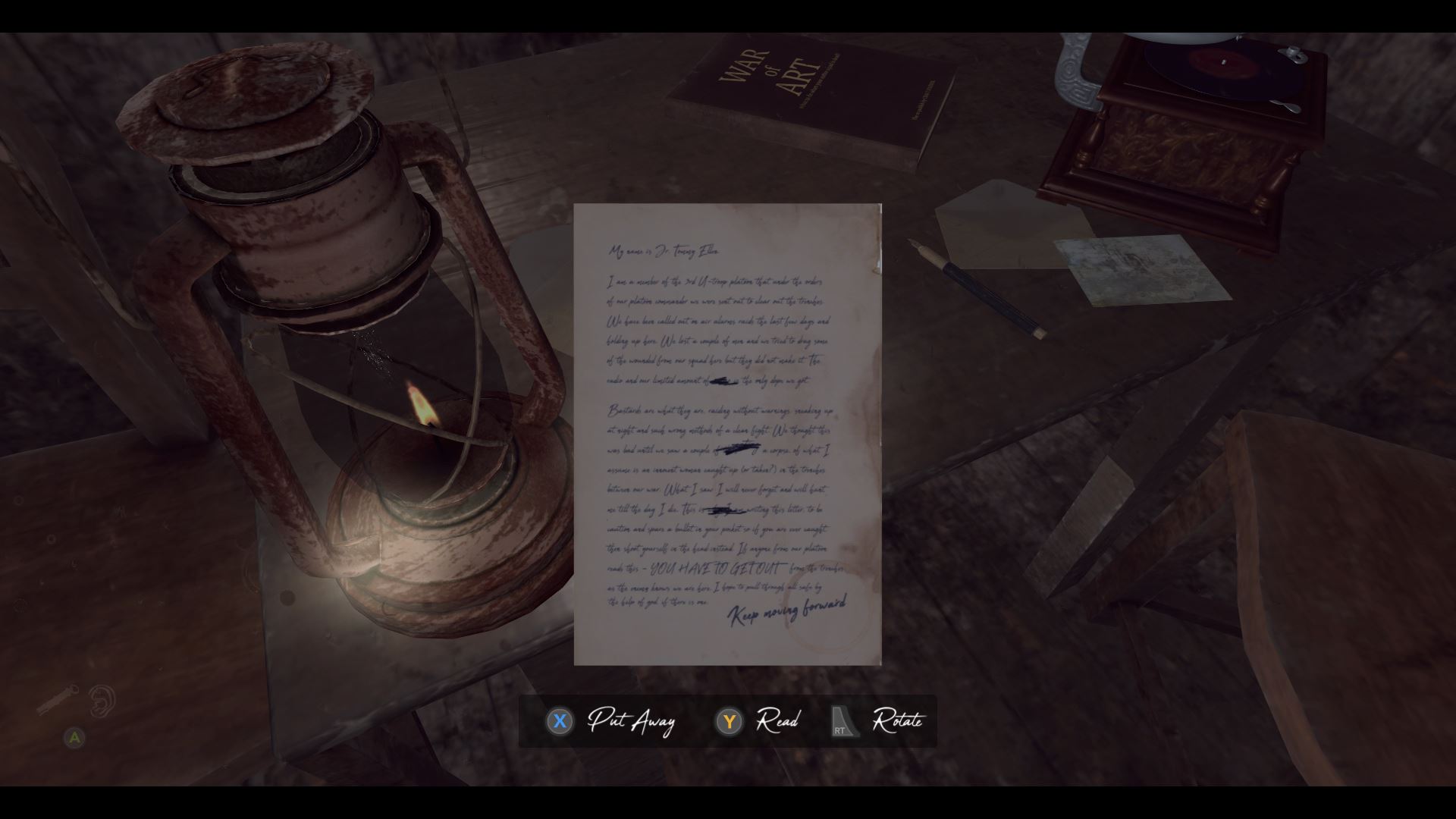 Samozrejme, zbierate rôzny listy, fotky a iné odkazy, ktoré dokresľujú, ako ľudia v zákopoch a medzi nimi strácali životy. Okolo vás je síce priamo smrť, ale toto má na vás možno aj väčší dopad. Vojaci mali rodiny, sny, plány, no už je z nich už len mŕtvola v blate. Skvelá premisa. Tak prečo mám zbierať malé deti (ešte aj s pupočnou šnúrou a v kaluži krvi), ktoré ma vyvedú z bludiska zákopov? Aký to má zmysel? Hra vám veľmi skoro vysvetlí, že ich potrebujete 9 a máte nasledovať ich plač. Tie prvé tri sú relatívne blízko za sebou a môžete sa tak podľa plaču jednoducho orientovať. Potom je ale zrazu ticho a vy len beháte po zákopoch s nastraženými ušami, čo sa z niektorej časti neozve plač.