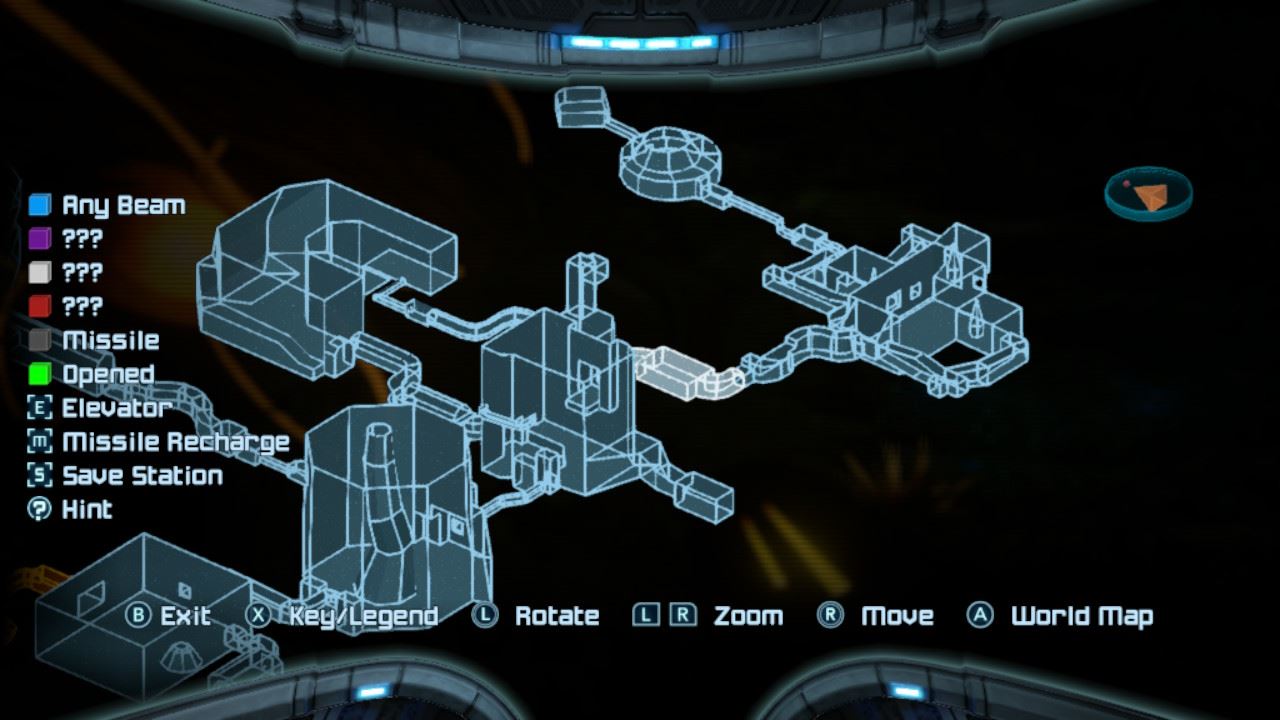 Toto všetko platí pre Metroid Prime. Dalo by sa povedať, že je to open world hra, pričom ten svet tu nie je malý. Delí sa na niekoľko pomerne rozsiahlych častí, ktoré kombinujú tunely, rozsiahlejšie pasáže, arény a podobne. Každá z týchto častí je iná podľa logiky toho, kde sa v rám ci sveta nachádza - zelený povrch, ľadové kopce, lávové jaskyne a podobne. Medzi týmito časťami prechádzate výťahmi, takže sa naozaj relatívne dosť nabeháte hore a dole. A nie sú tu žiadne loadingy. Pomôcť si môžete získaním mapy danej časti, ktorá je zväčša skrytá v nejakej miestnosti, ktorú musíte objaviť. Nebudete tu blúdiť, hra vám naozaj ukáže, kam vás pustí. A ak sa aj náhodou dlho niekde motáte, dokáže vám aj na ešte neodhalenej mape naznačiť, kam by ste mali ísť.