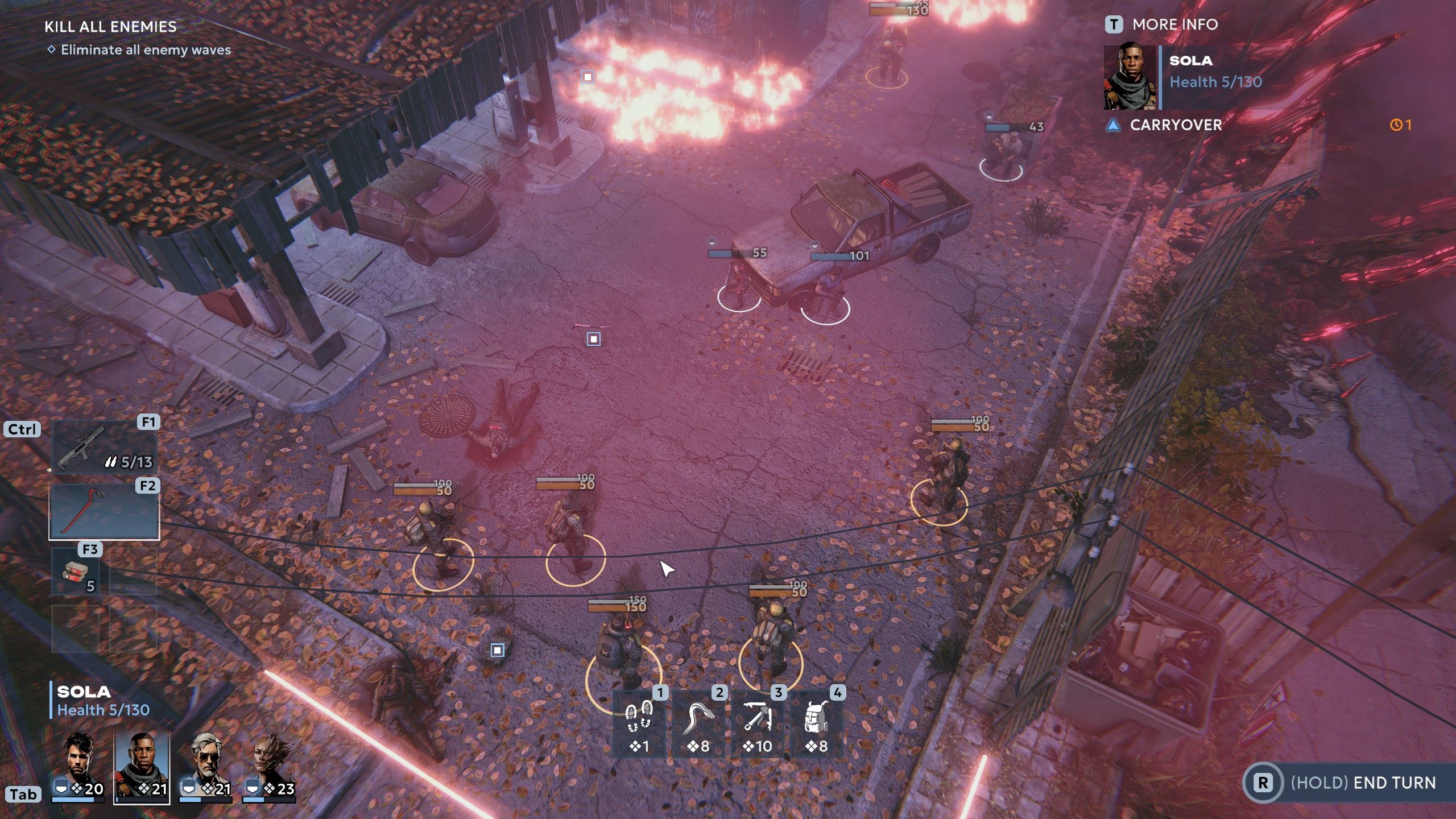 Zatiaľ to všetko vyzerá dobre, ba priam až idylicky. Novátorská, príbehom ťahaná ťahová stratégia. Lenže tu sa náš opis nekončí a keď sme povedali „a", musíme povedať aj „b". Hra je technicky na slušnej úrovni, nezaznamenali sme žiadne problémy, okrem toho, že máme pocit, že tvorcom vypršal čas na prípravu obsahu. V jednej z budov nájdete logický hlavolam, ktorý musíte vyriešiť pre posun deja ďalej. Viete, koľkokrát ešte nejaké puzzle budete riešiť? Iba tento jediný raz. V ďalšej misii dostanete do rúk mínomet. Zatipujte si, koľkokrát ho ešte za hru použijete. Áno, 0. Vedľajšie misie? Jedna - hľadanie ventilu na uzatvorenie spaľovne.