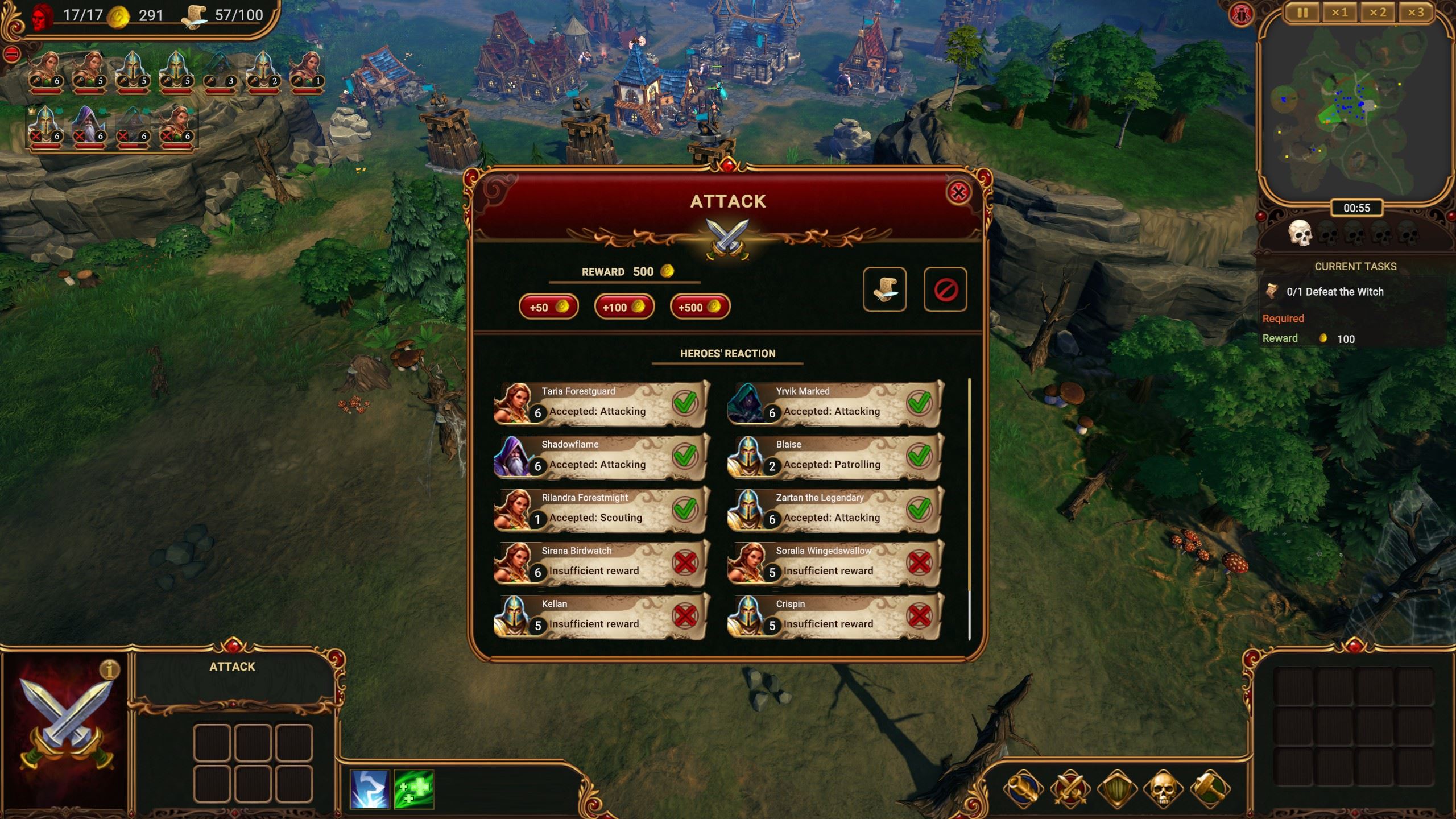 Hrdinov priamo neovládate, treba im sľúbiť odmenu v zlate a musí byť dostatočne vysoká.